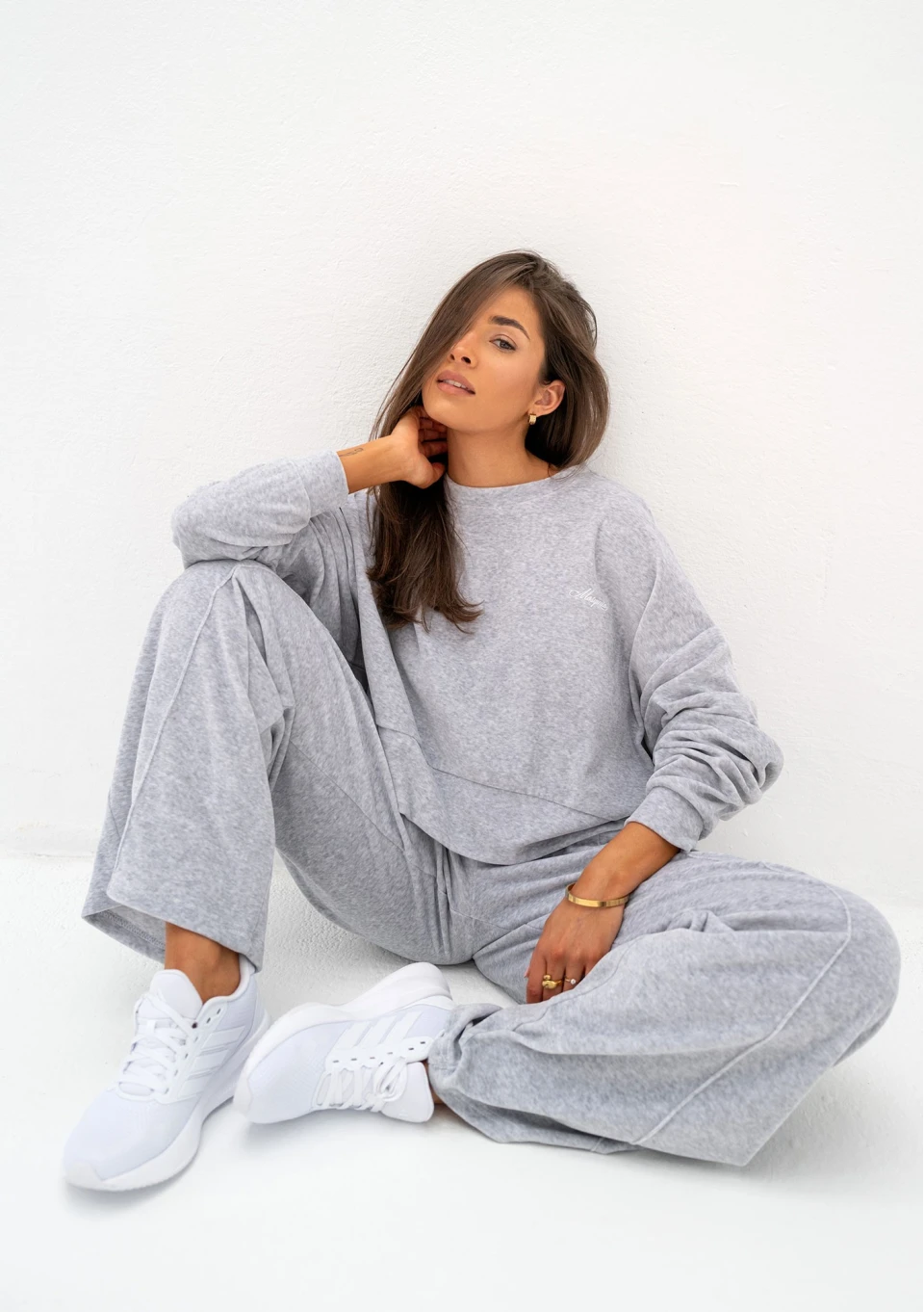 Costa Velvet - Melange grey velvet sweatshirt