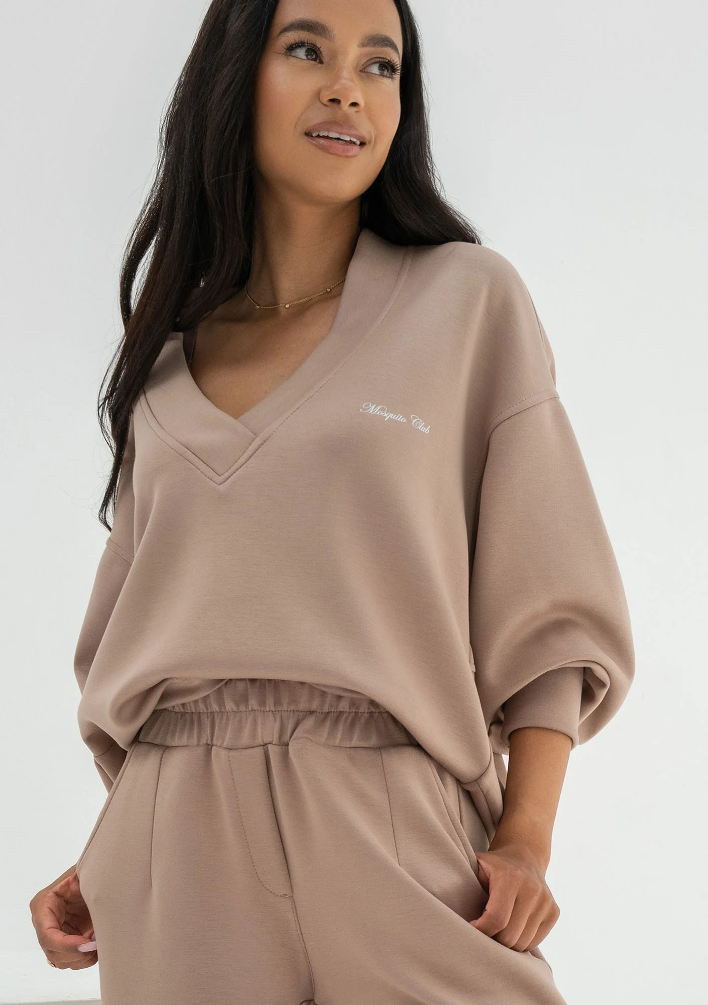 Jest to cudowny komplecik, taki lekko oversize i przewiewny, czuje się w nim leciutko i mięciutko:) a poza tym fajny dekolt pozwala na lekki sexapil.