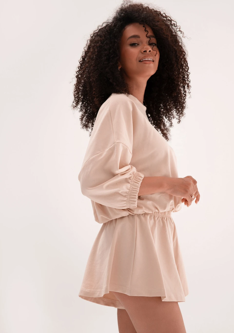 Shore Velvet - Taupe velour sweatshirt with a logo