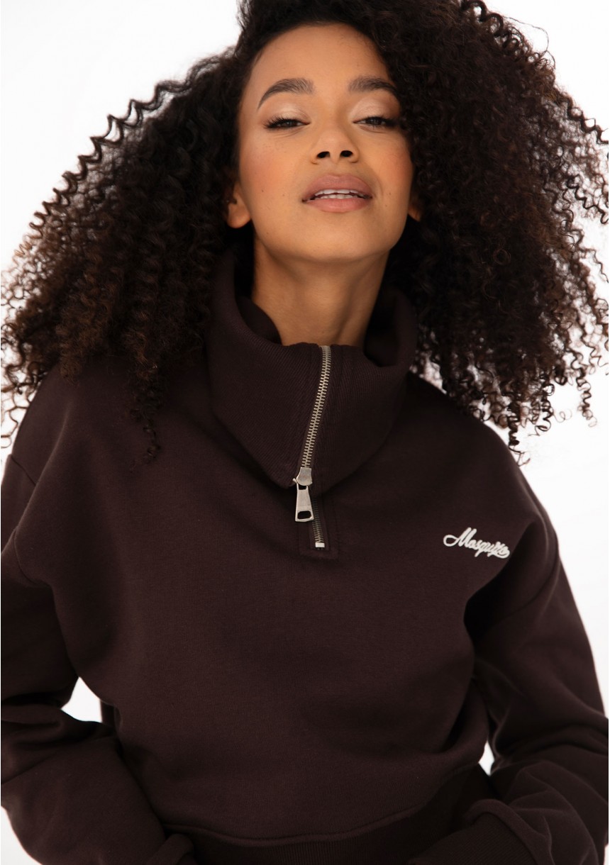 Iris Zip-up - Chocolate brown zipped-up fitted jumper