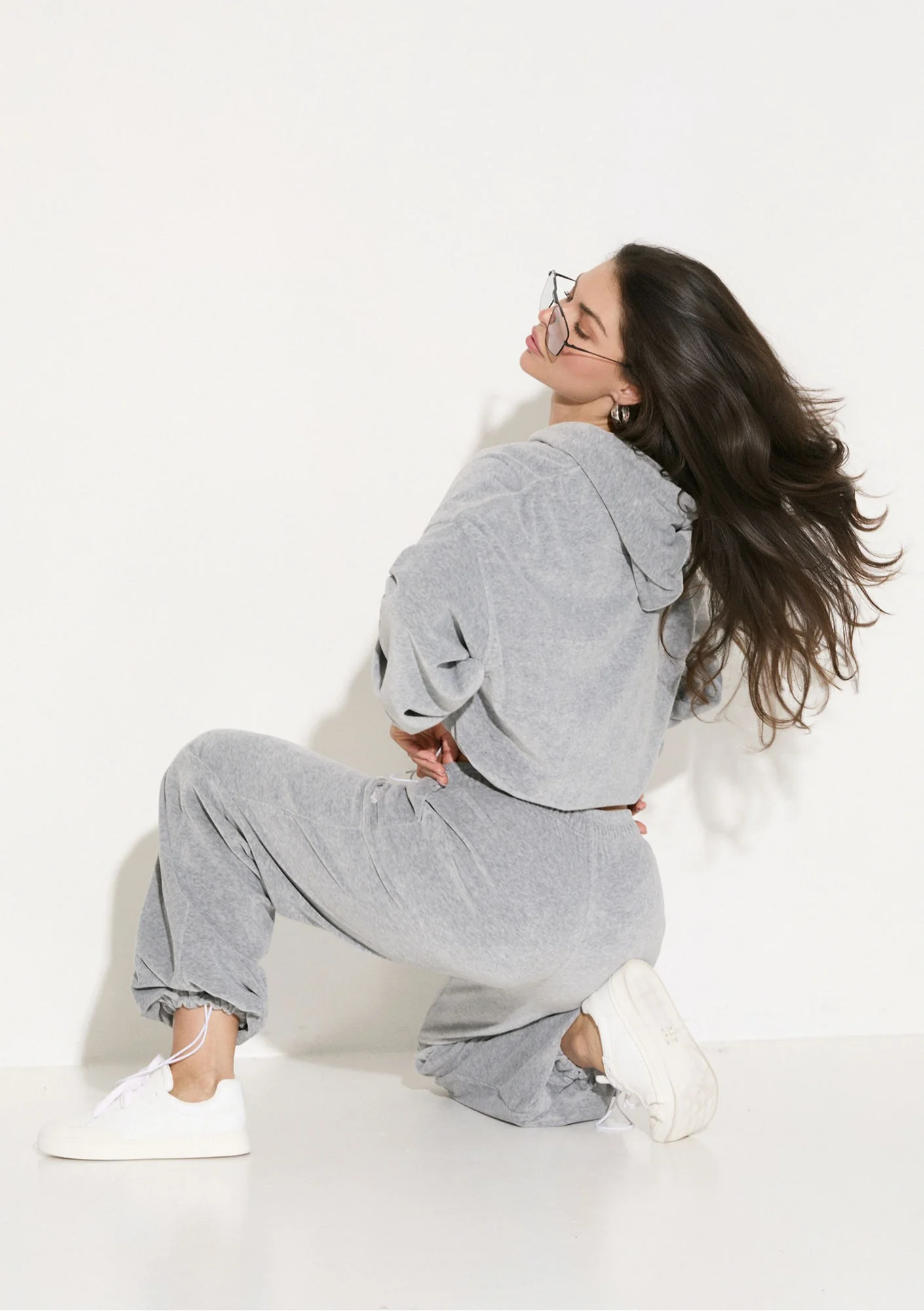 Lush - Melange grey zipped velvet hoodie
