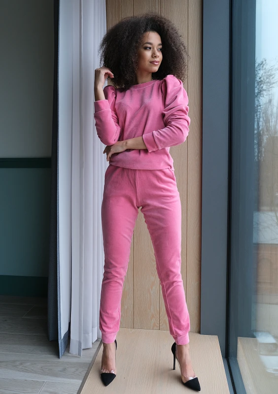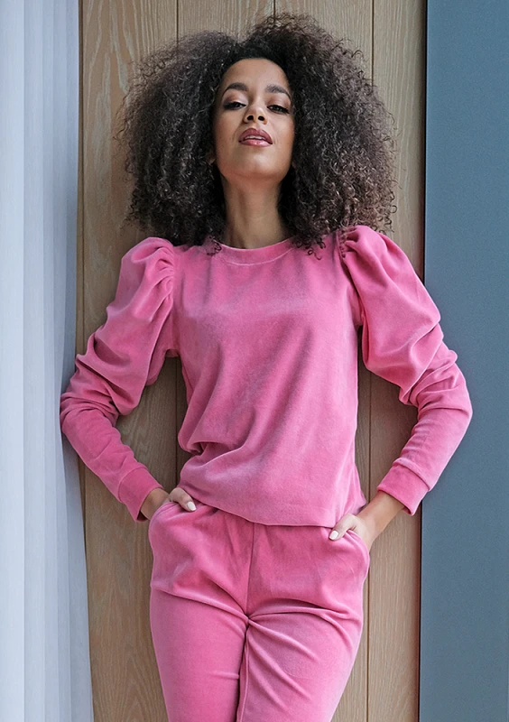 PINK VELVET SWEATSHIRT WITH PUFF SHOULDERS