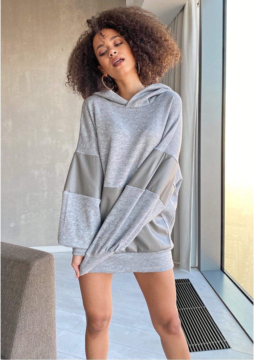 GREY OVERSIZED SWEATER WITH HOOD