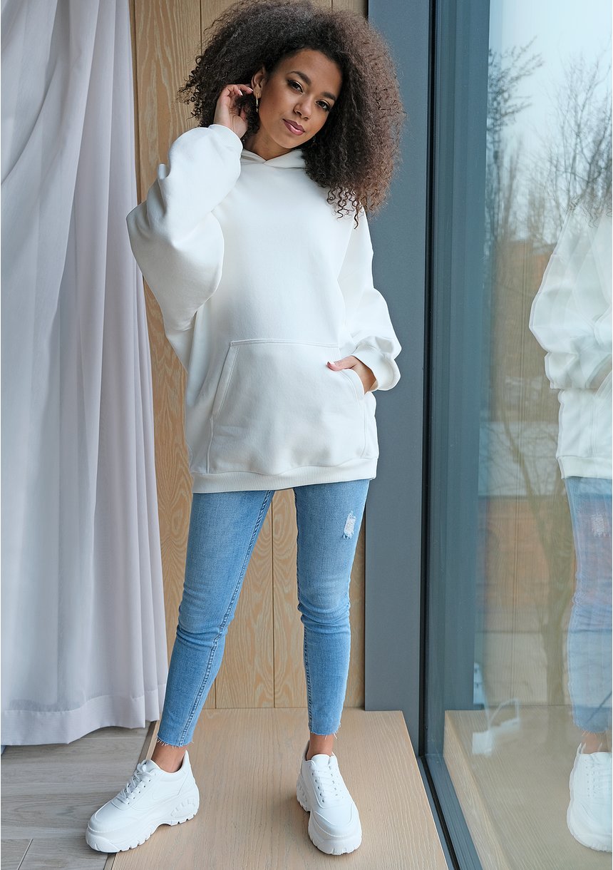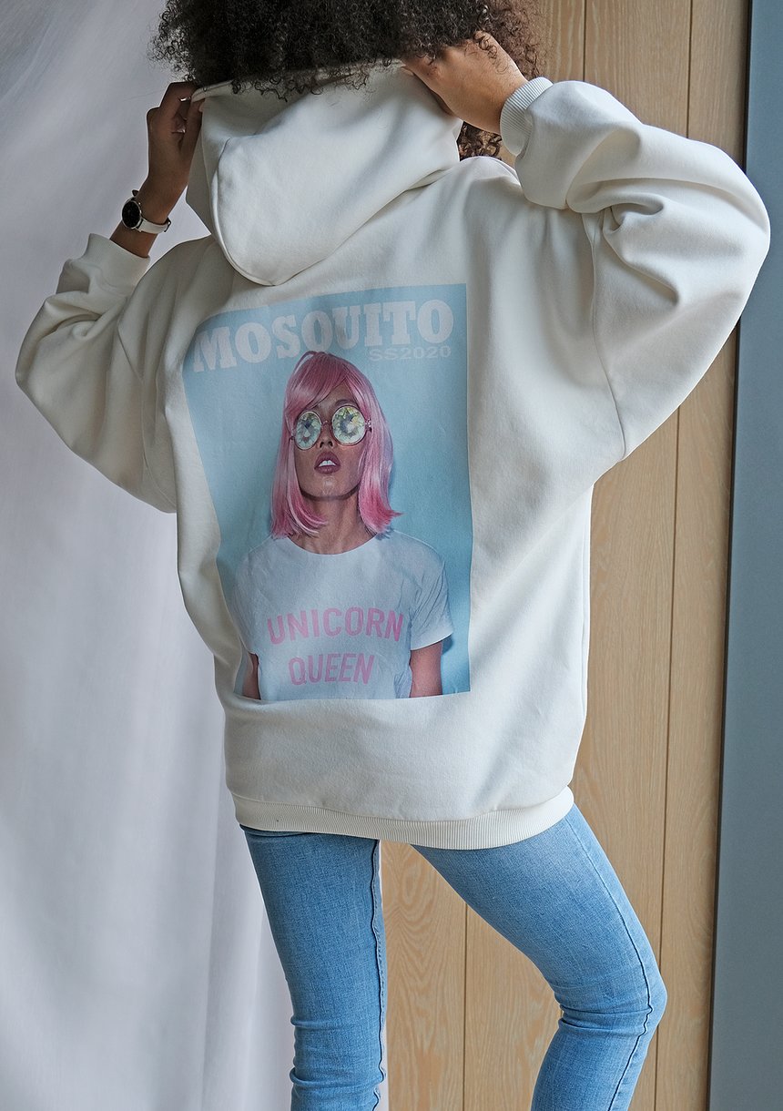 ECRU HOODIE WITH UNICORN QUEEN PRINT ILM