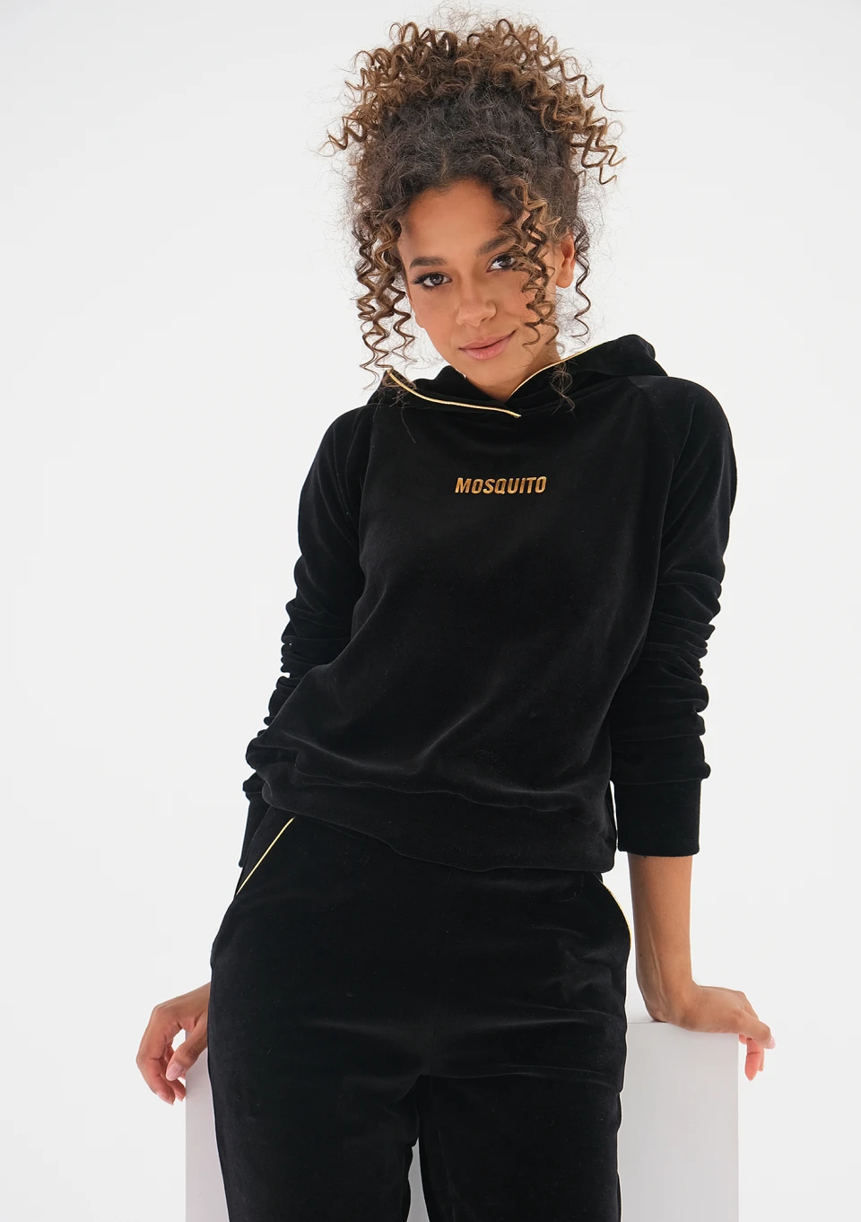 Queens - black velvet hoodie