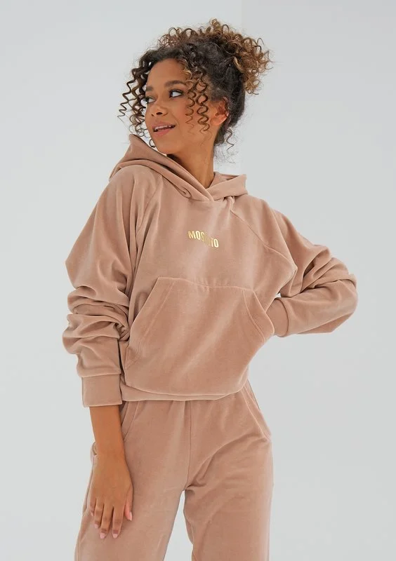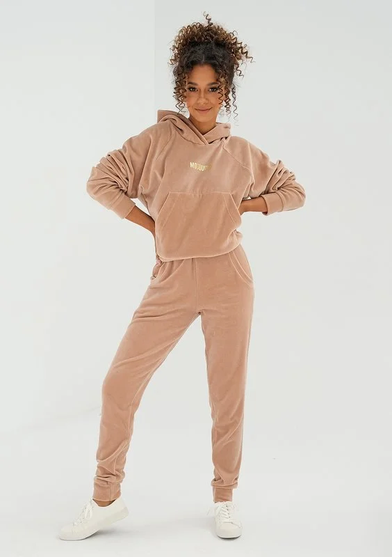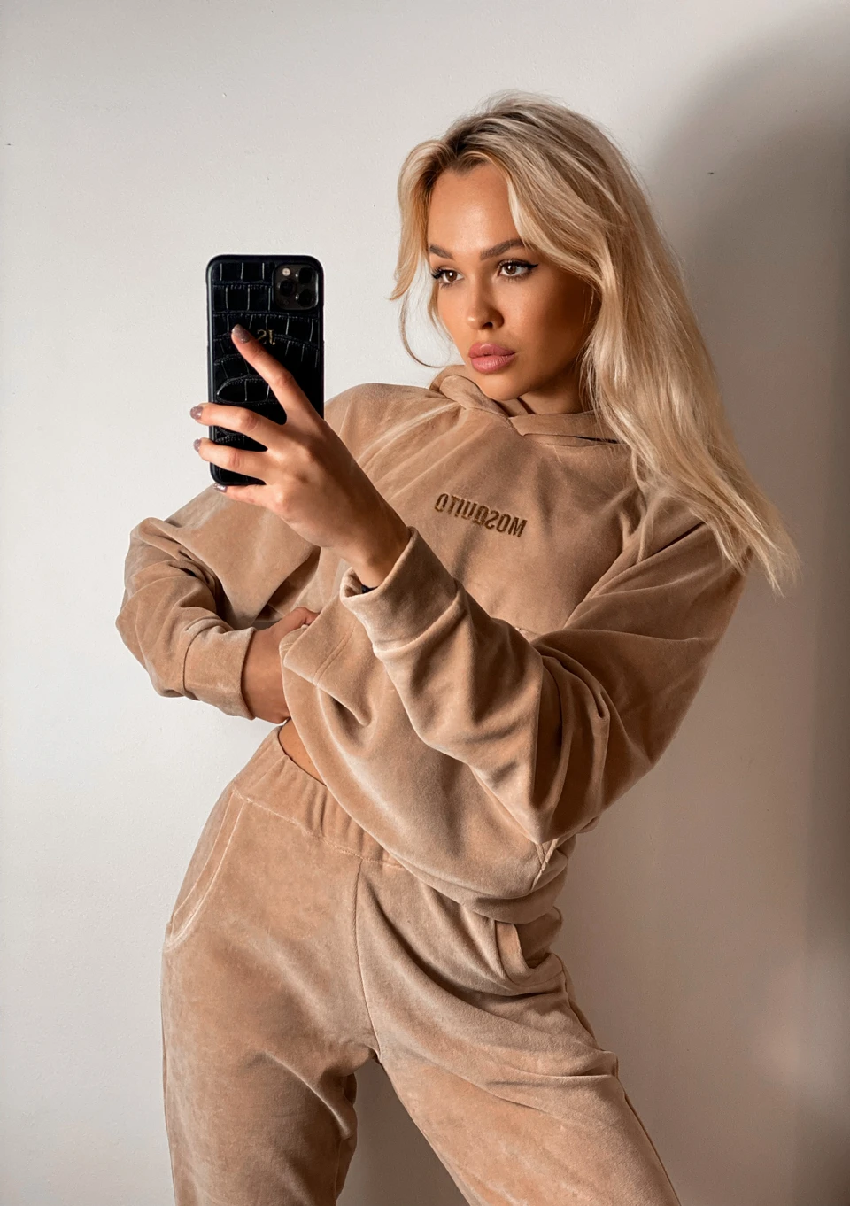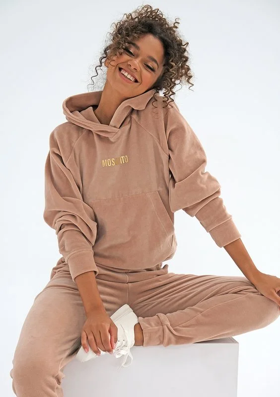 Shore Velvet - Melange grey velour sweatshirt with a logo