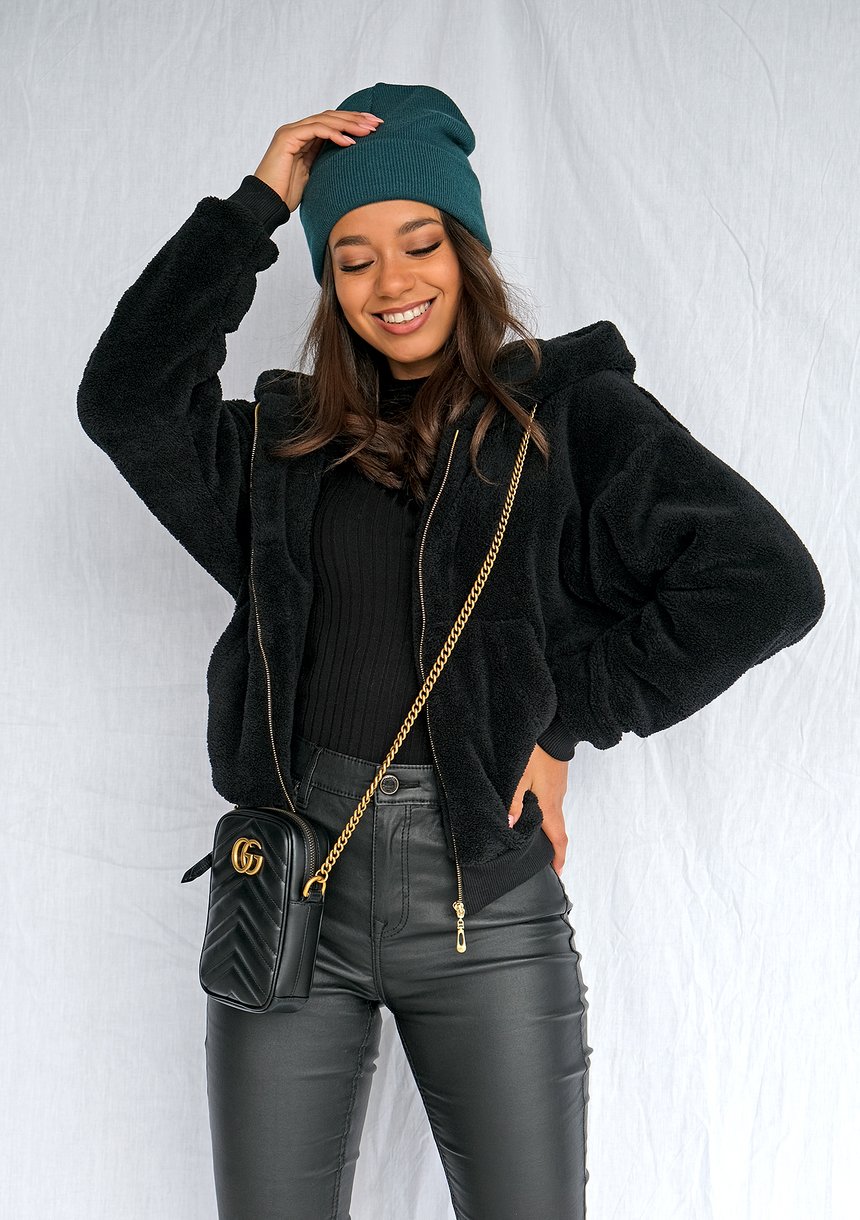 Zip up black teddie hoodie ILM