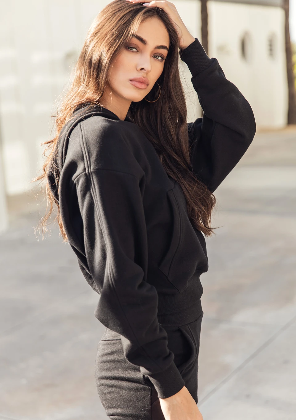 Roxy - Short dark chocolate brown zipped jumper with a hood