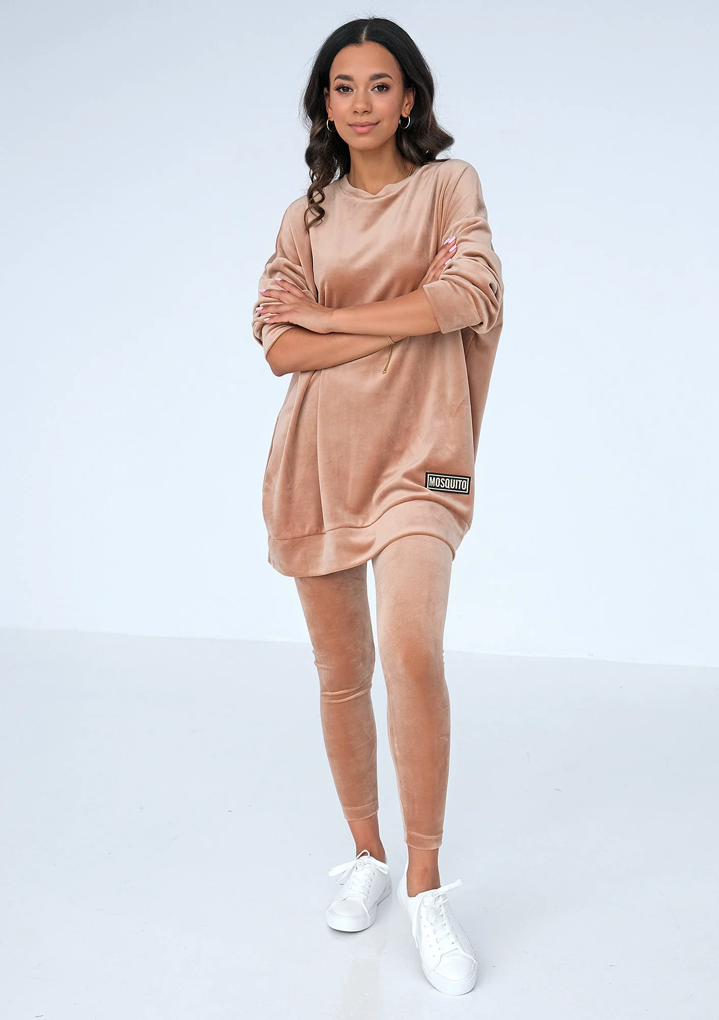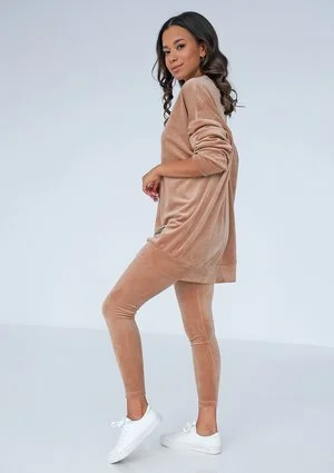 Long beige velvet sweatshirt