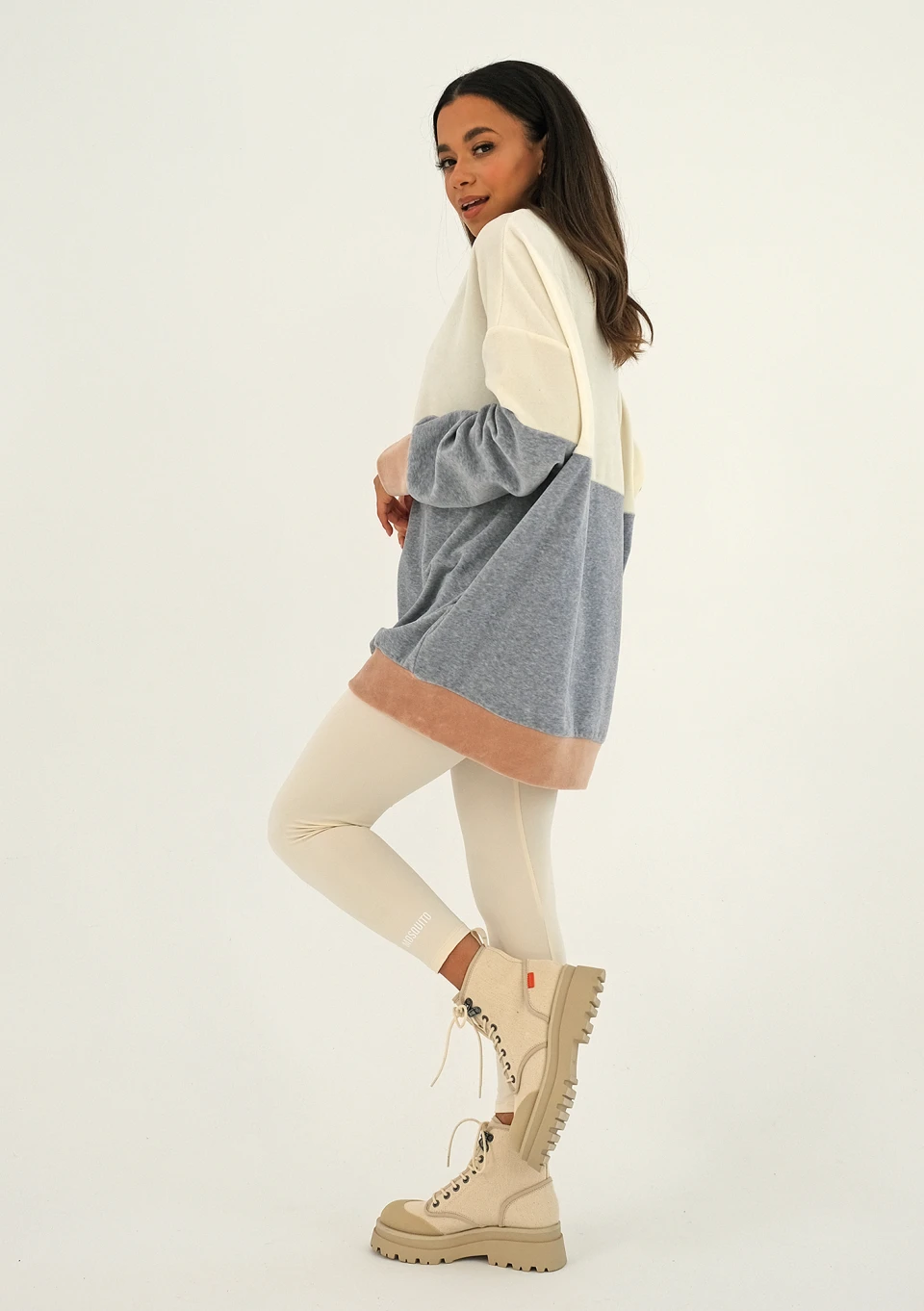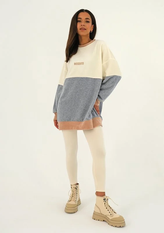 Beige velvet sweatshirt with side stripe ILM