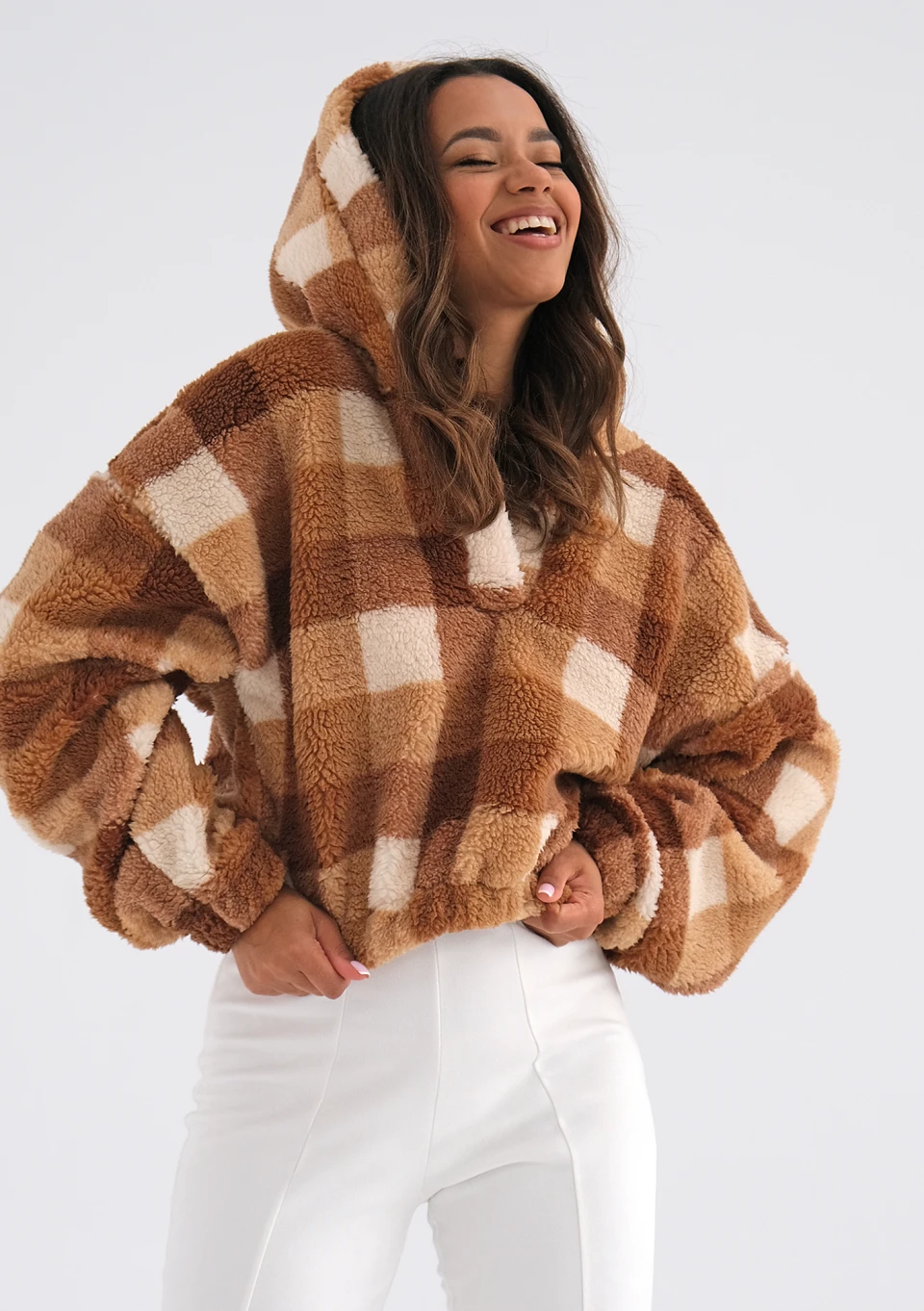 Teddy - brown checked boucle hoodie
