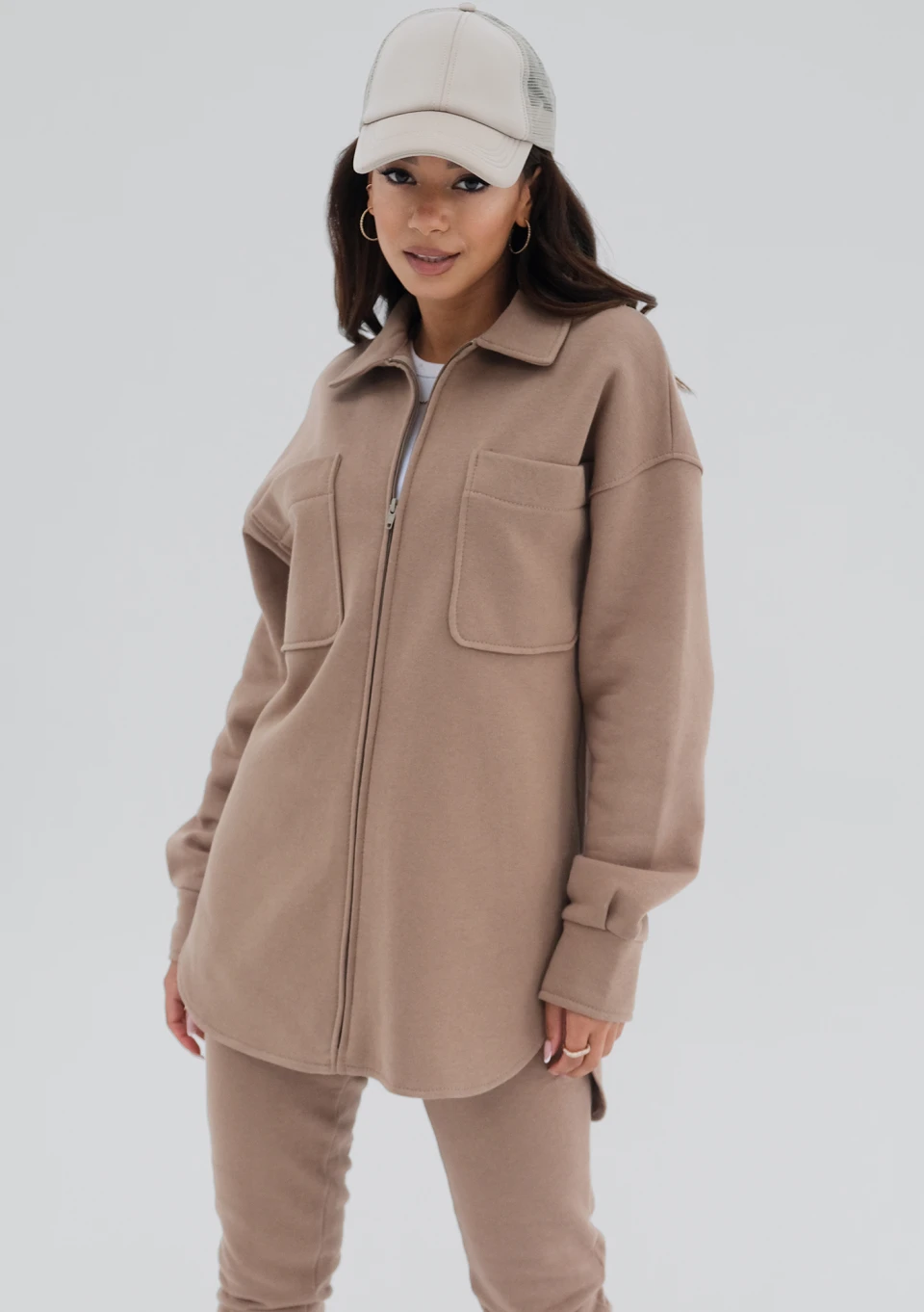 Iris Zip-up - Chocolate brown zipped-up fitted jumper