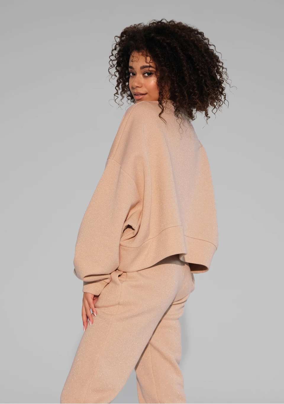 Cozy Flow - Brown oversized cotton v-neck sweatshirt