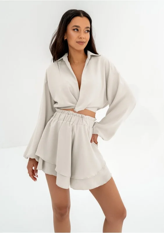 Capri - Beige muslin frilled shorts