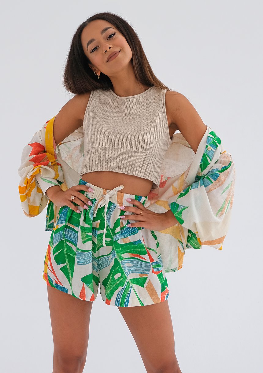 Itasca - Green leaves printed shorts