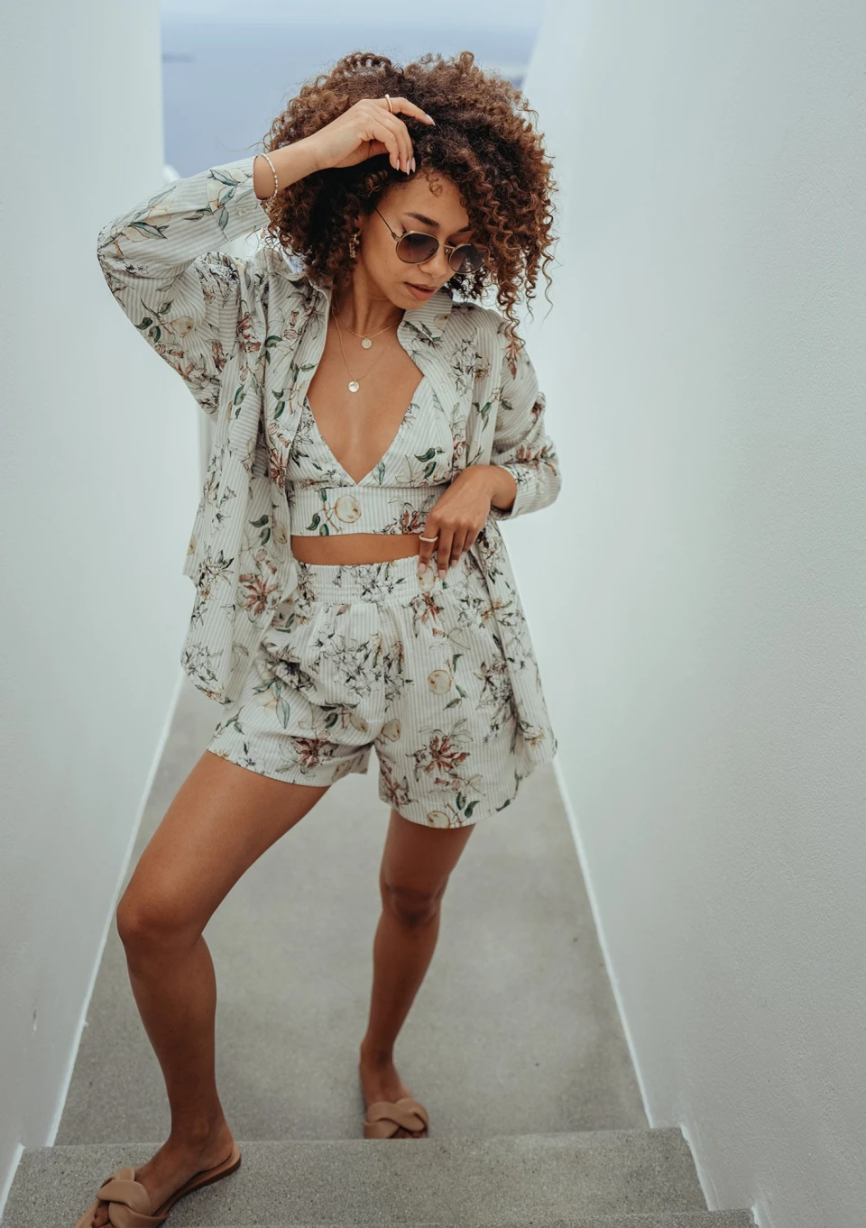 Suri - Minty floral boho shorts