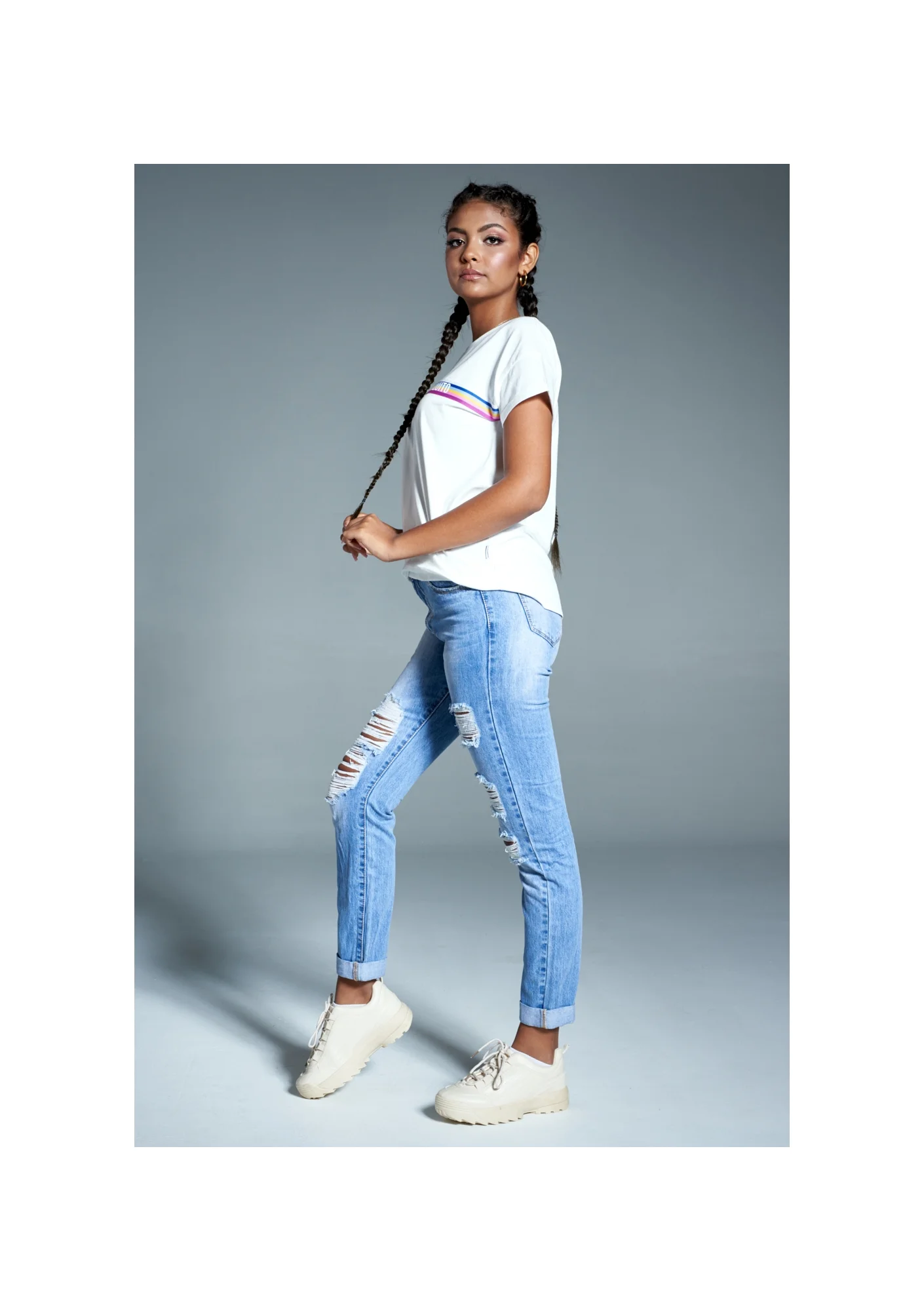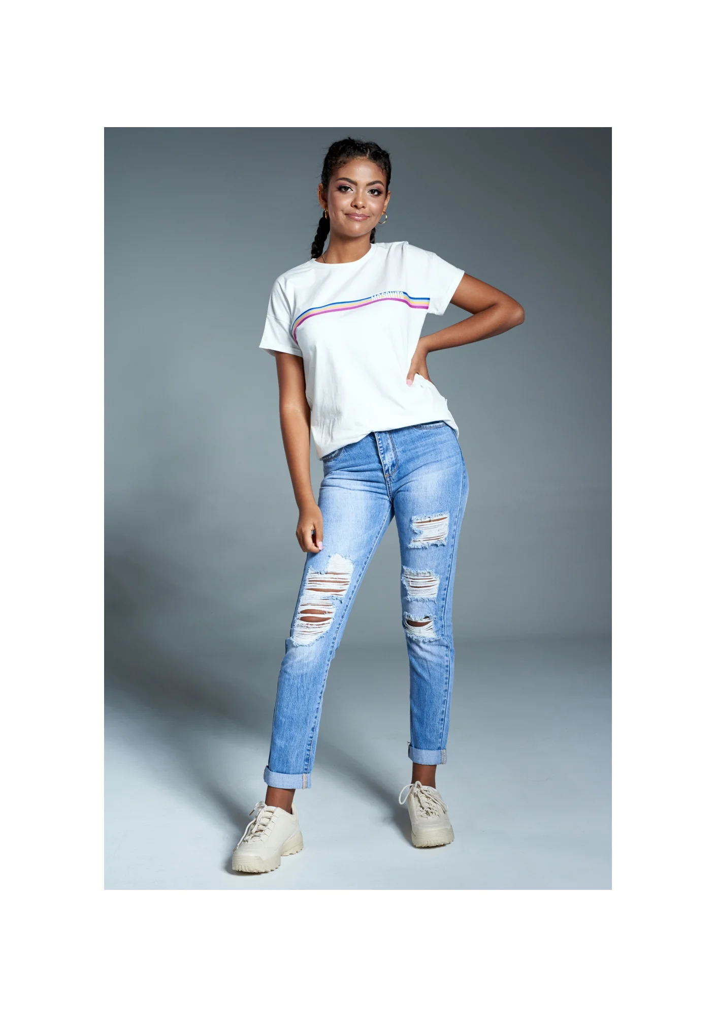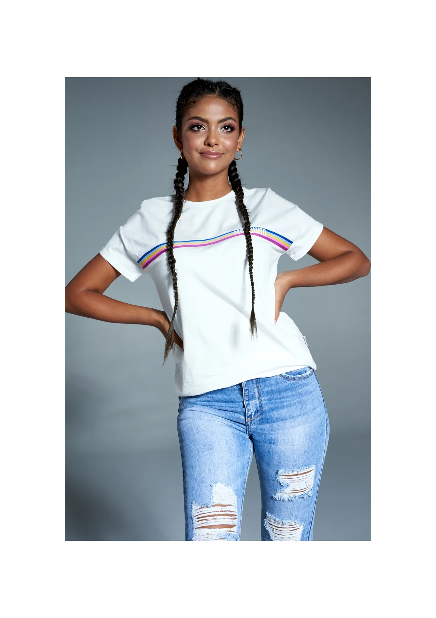 BRAND LOGO T-SHIRT WITH RAINBOW STRIPE ILM