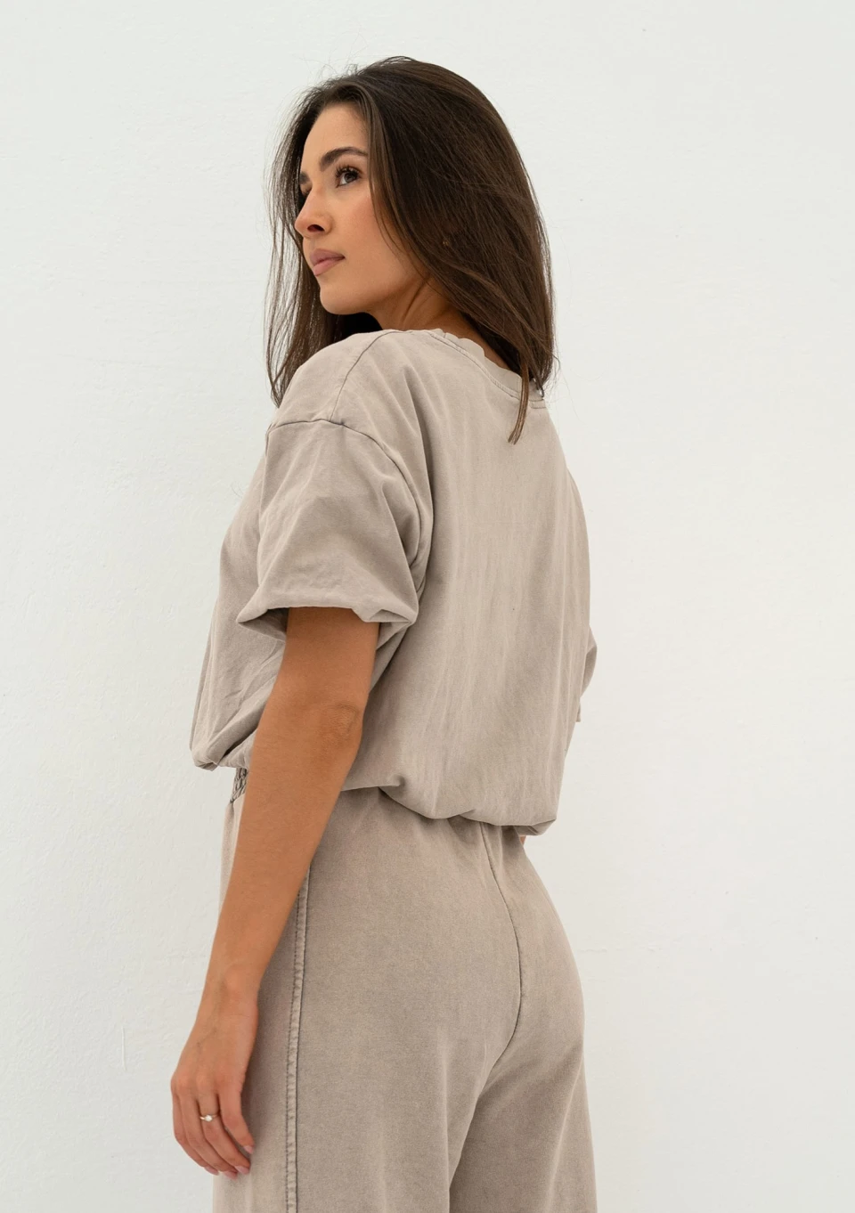 Kolee - Short savannah tan brown cotton top