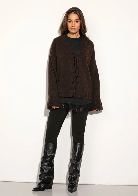 Knotty - Brown tied cardigan with loose sleeves