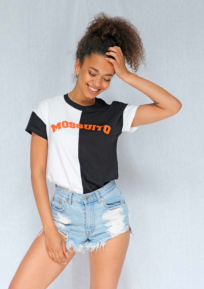 Black and White T-shirt with orange logo ILM