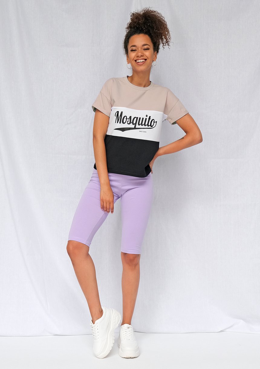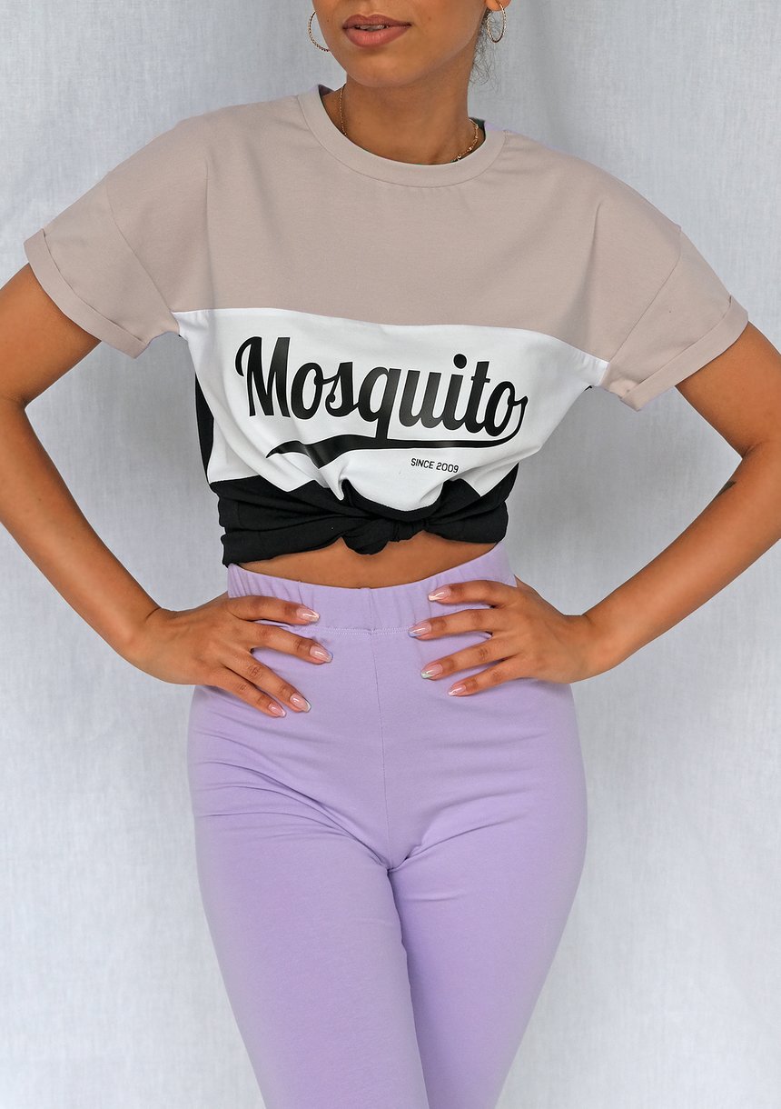 Beige and Black color blocks T-shirt with Mosquito logo ILM