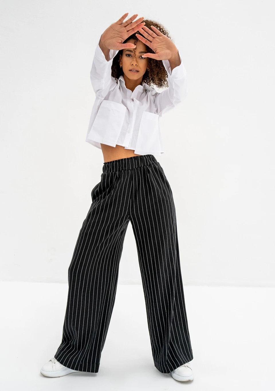 Emmel - Black striped linen trousers