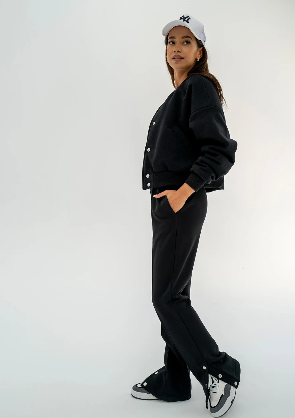 Club - Black snap-buttoned sweatpants
