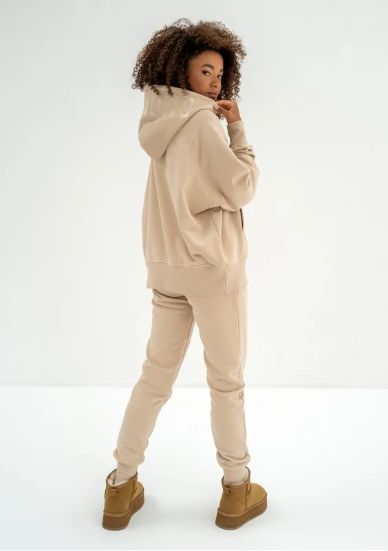 Amala - Sand beige oversize zipped hoodie