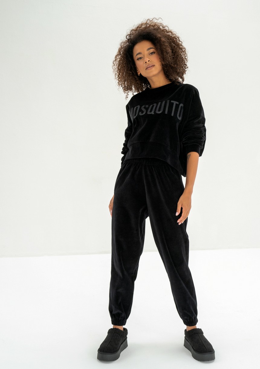 Shore Velvet - Melange grey velour sweatshirt with a logo