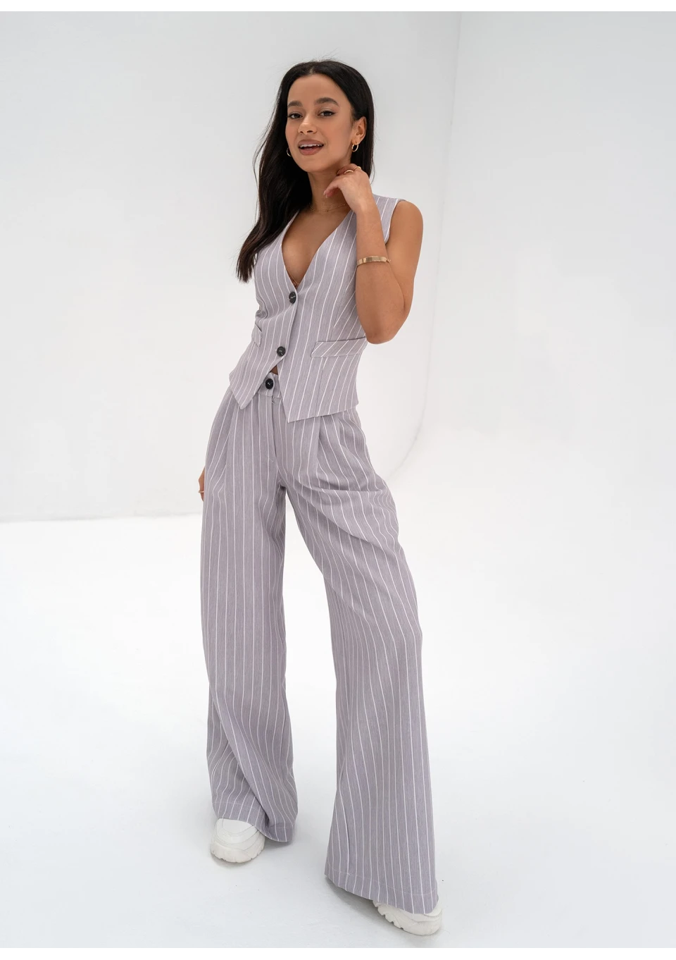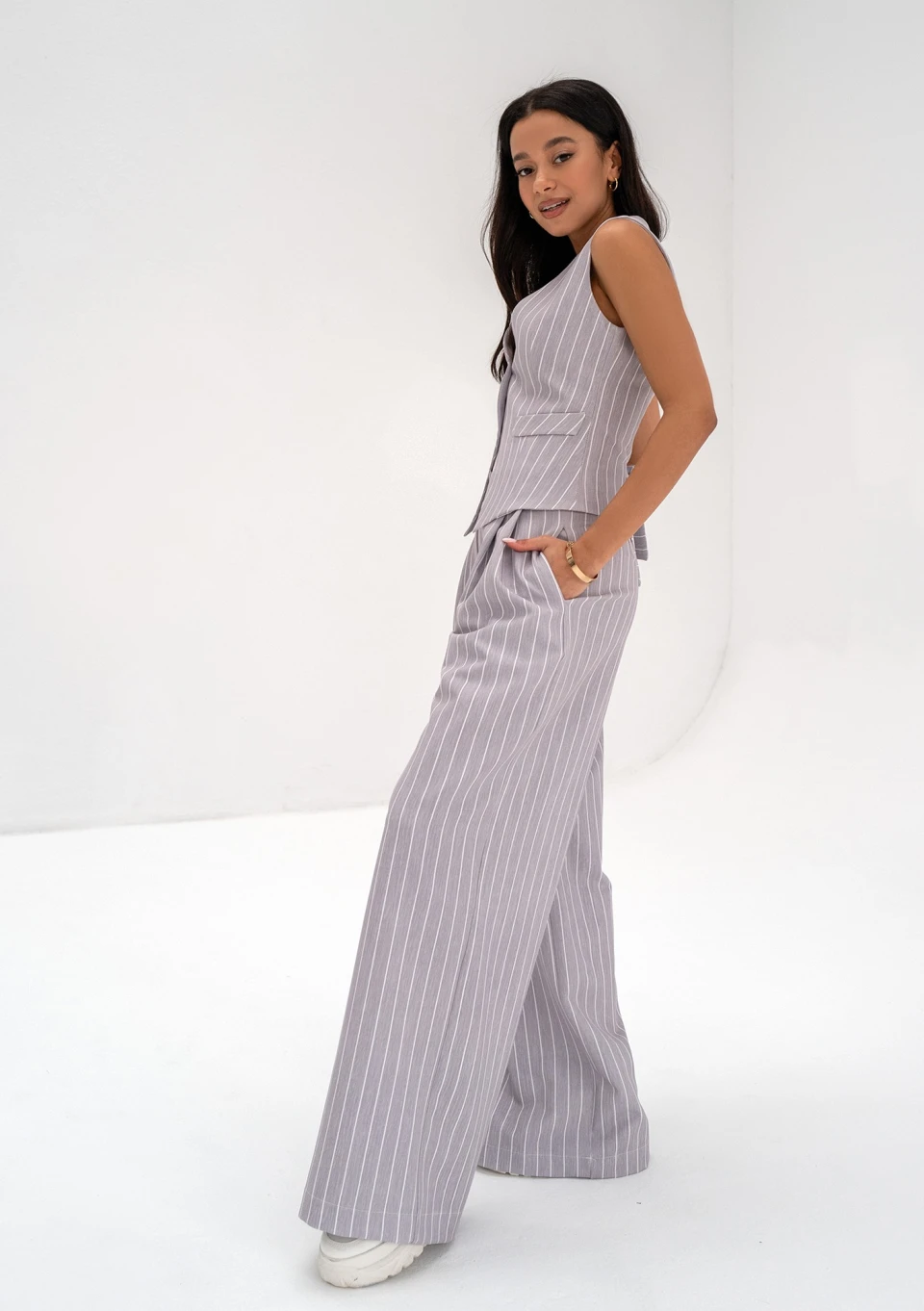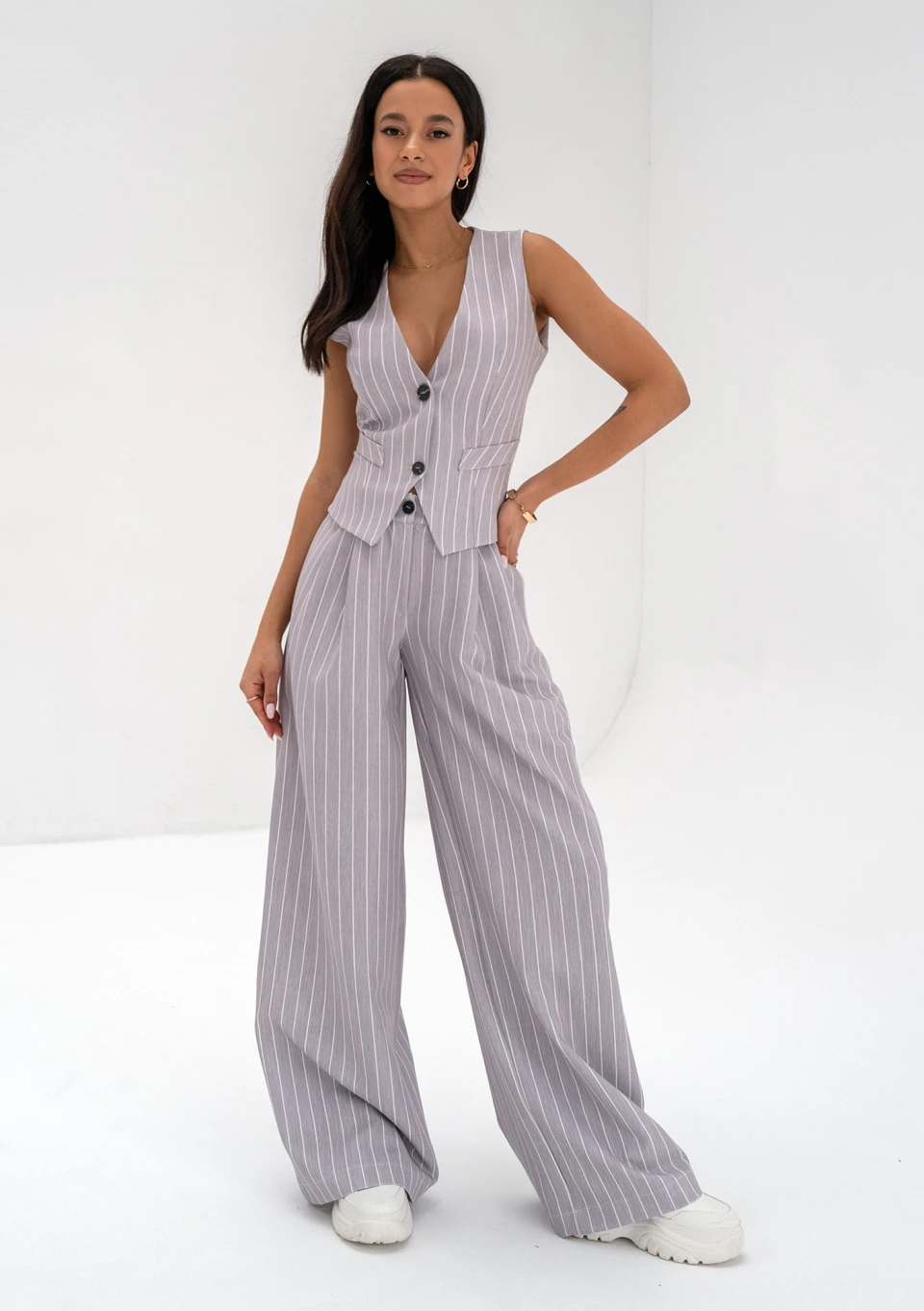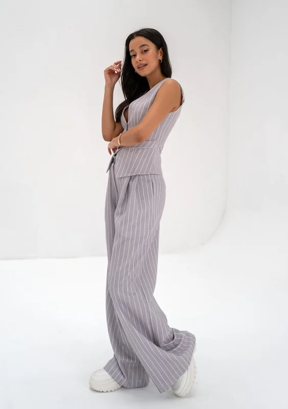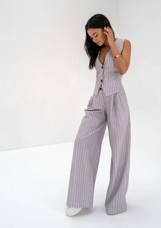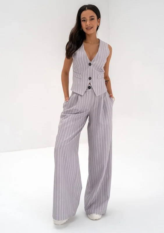 Mocca - Grey striped wide trousers