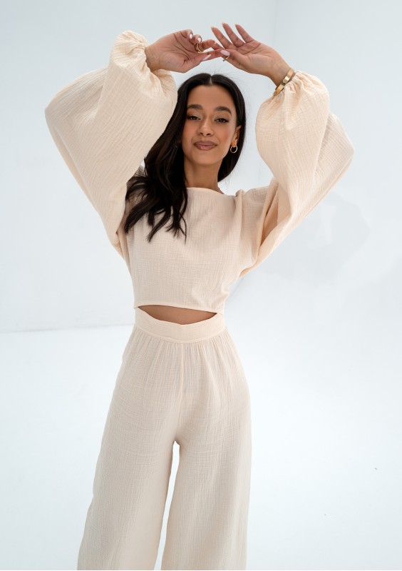 Bari - Beige muslin Spanish crop top
