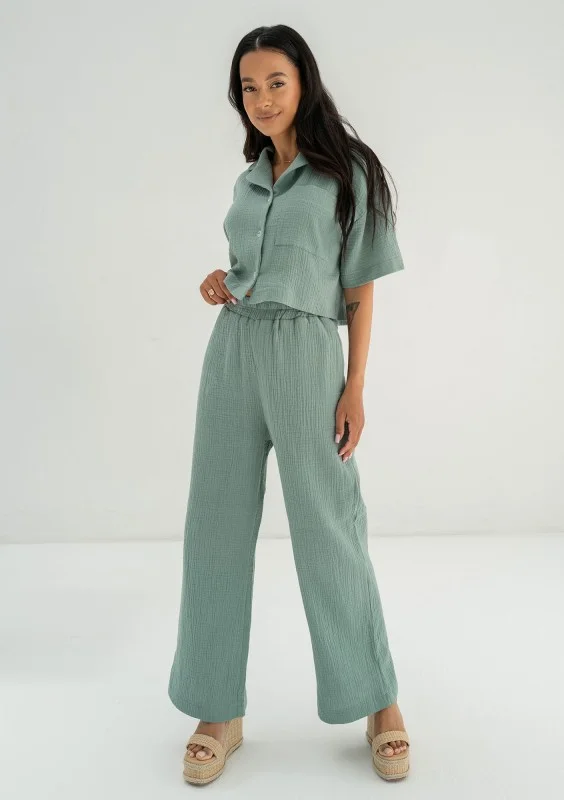 Nova - Green wide rayon trousers