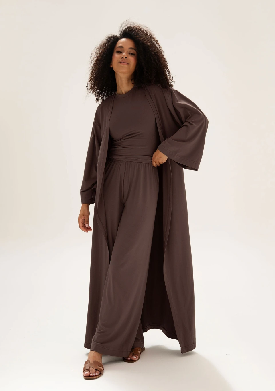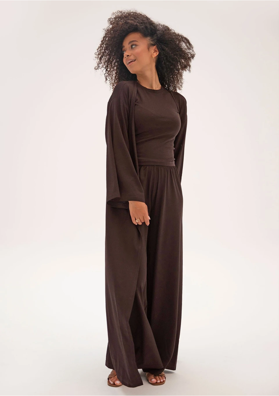 Lumiere - Chocolate brown rayon wide pants
