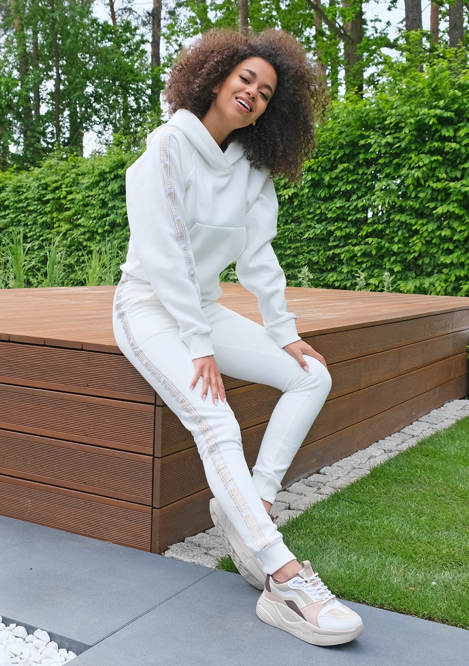 Ecru sweatpants with jacquard logo side stripe ILM