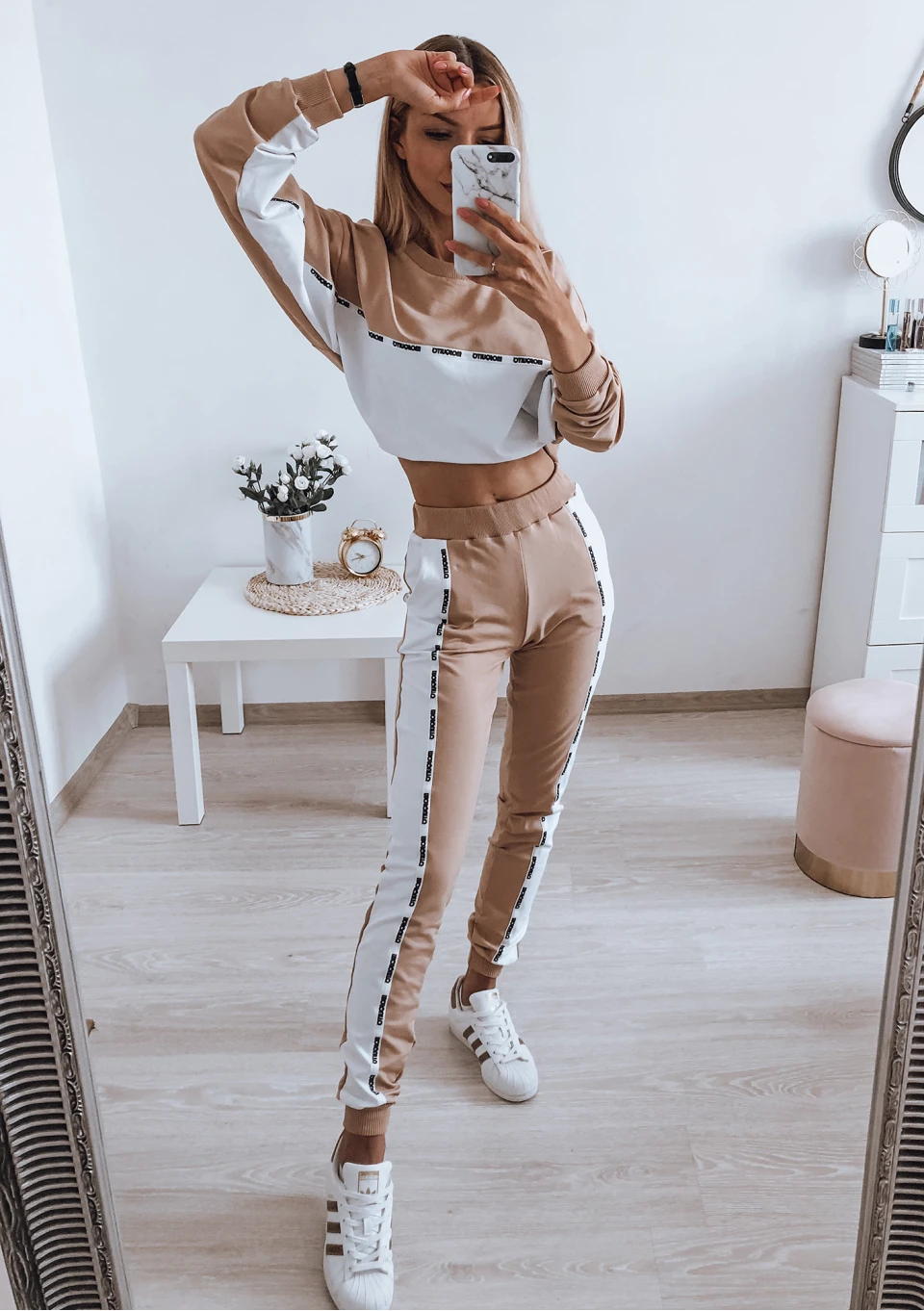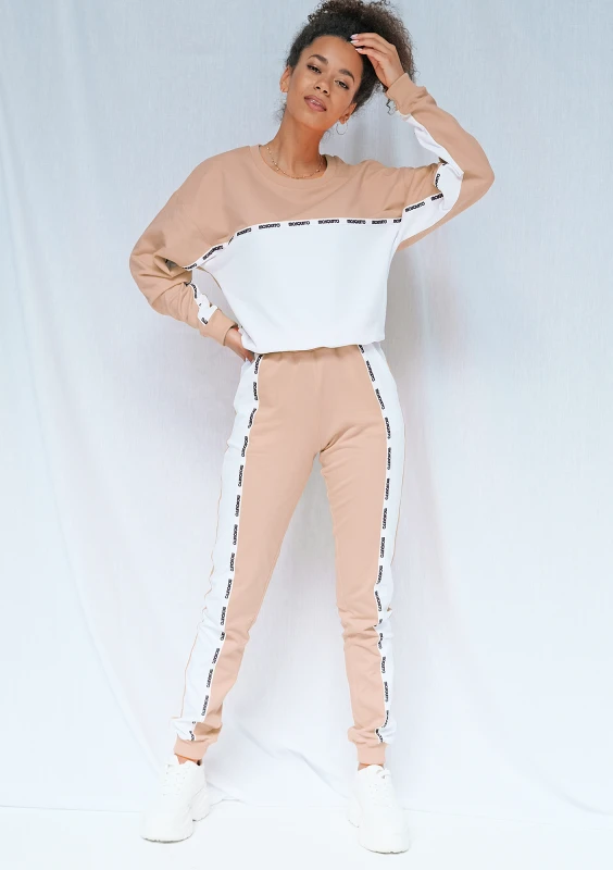 White & Taupe sweatpants with side stripe ILM