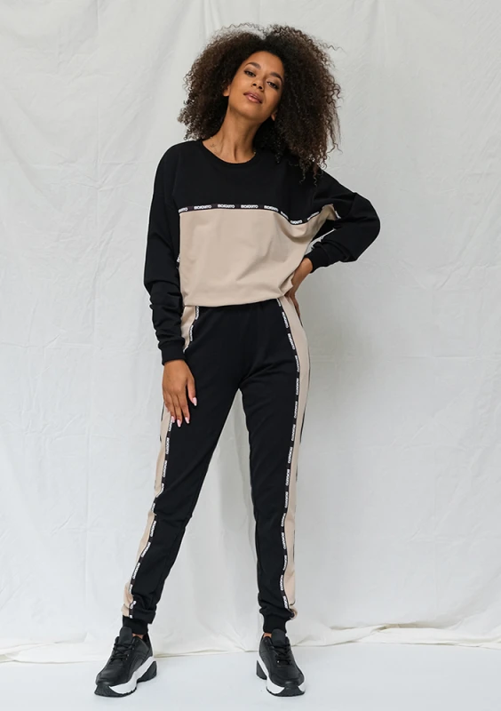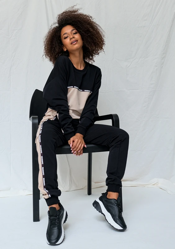 Black and beige sweatpants with logo stripe ILM