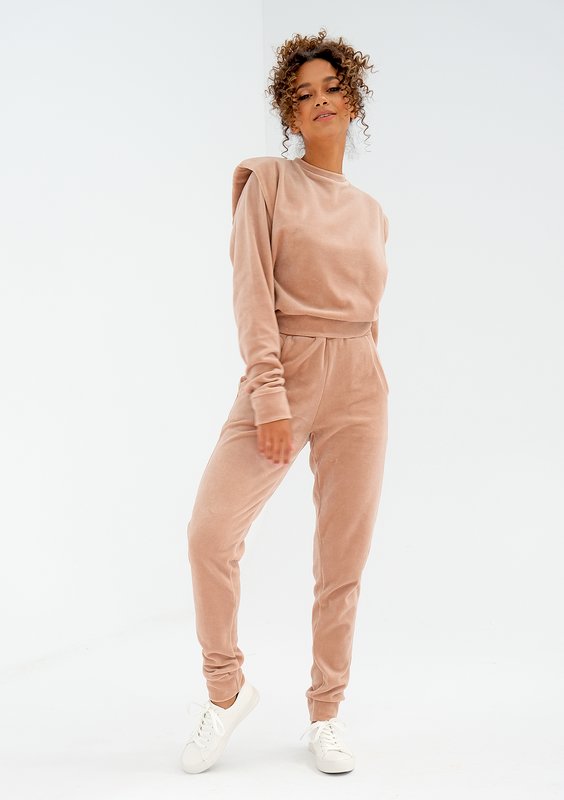 Terry - warm taupe velvet sweatpants