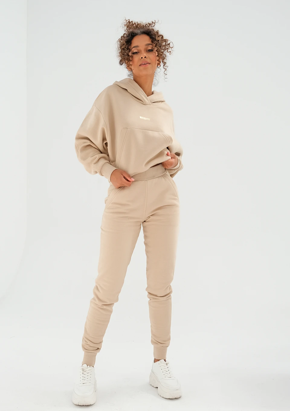 Amala - Sand beige oversize zipped hoodie