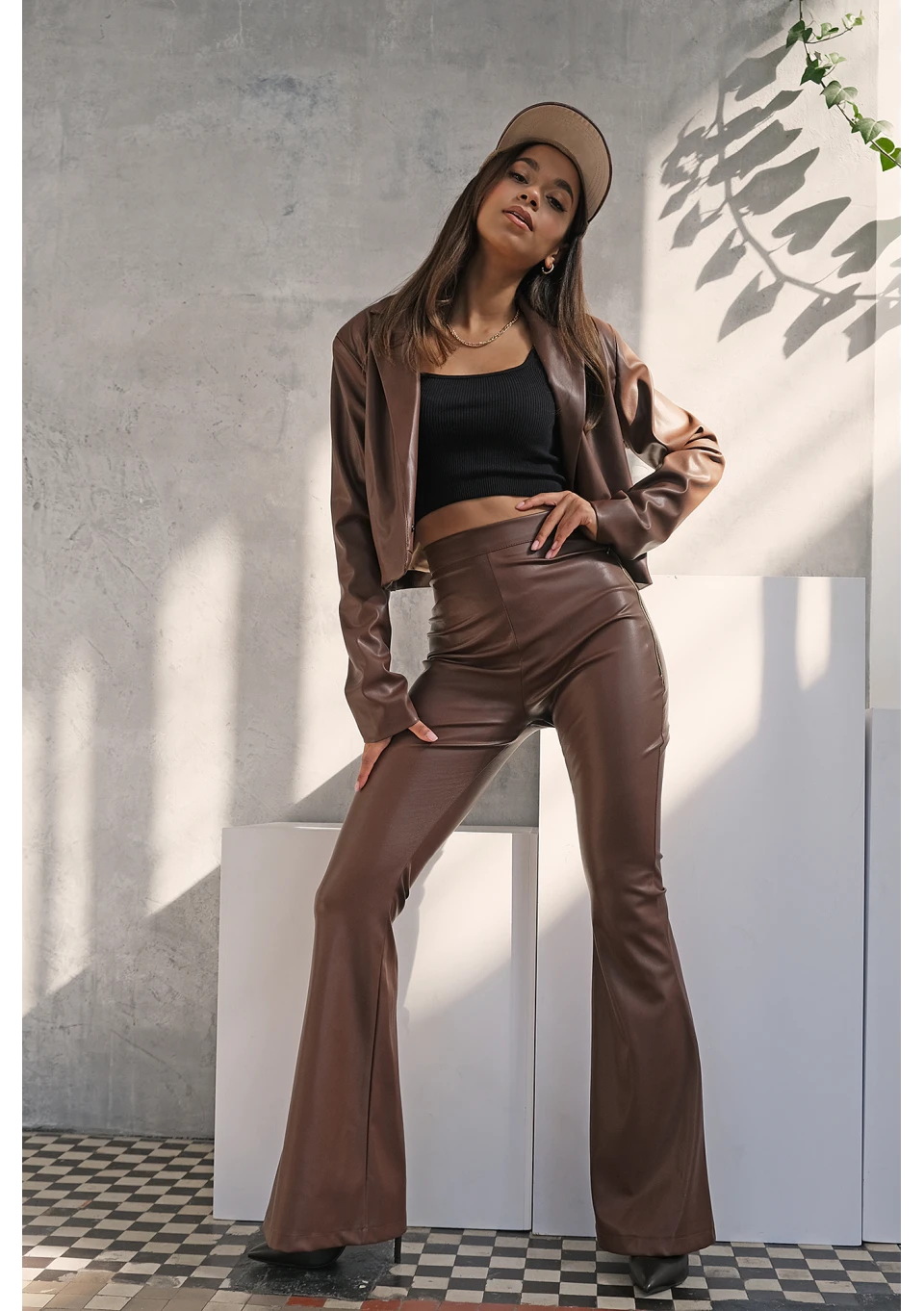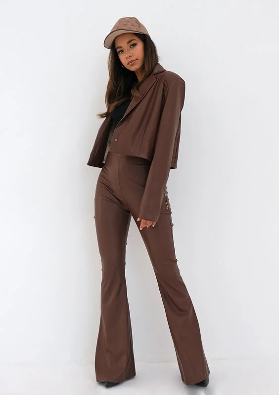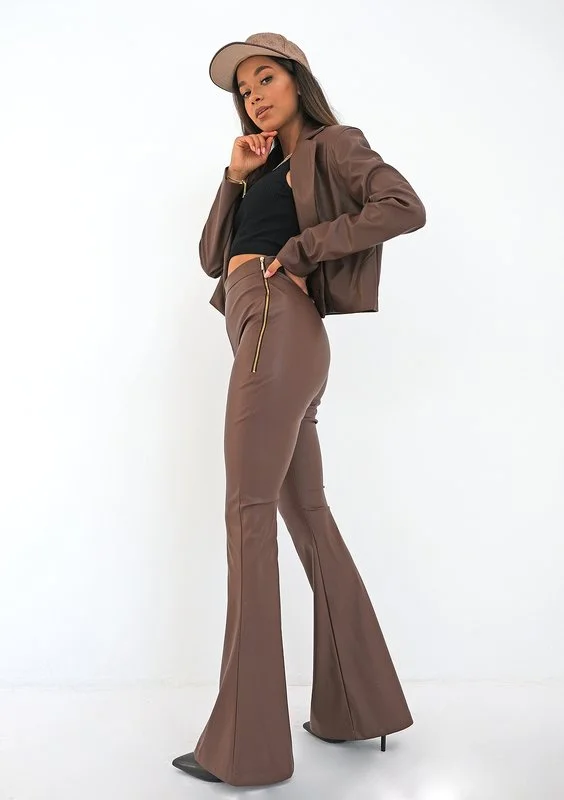 Sheny - brown eco leather flared trousers