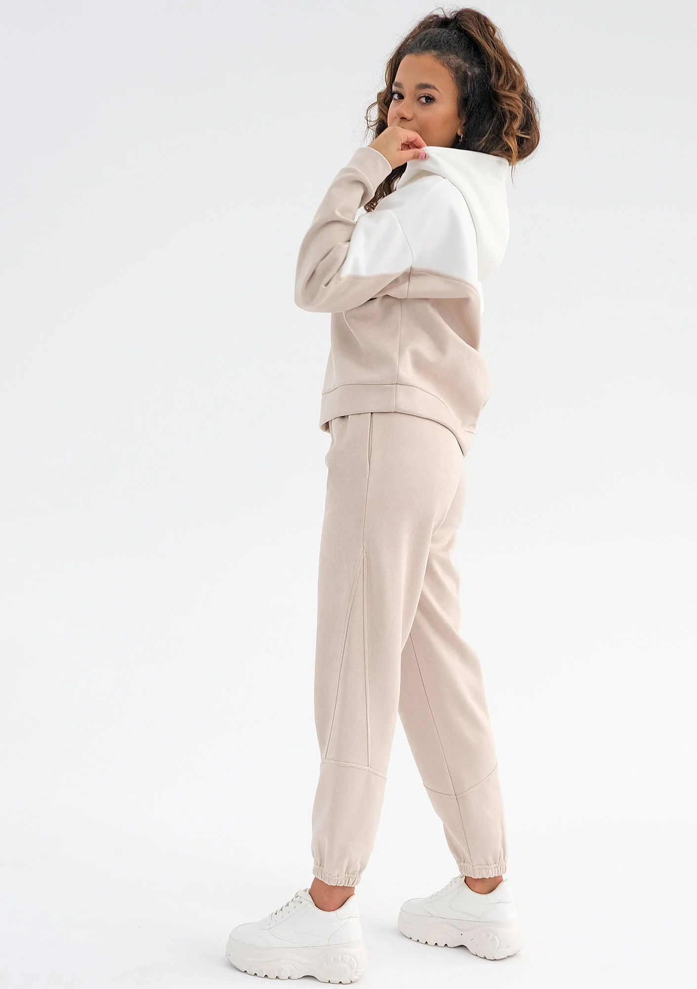 Irvine - beige faux suede sweatpants