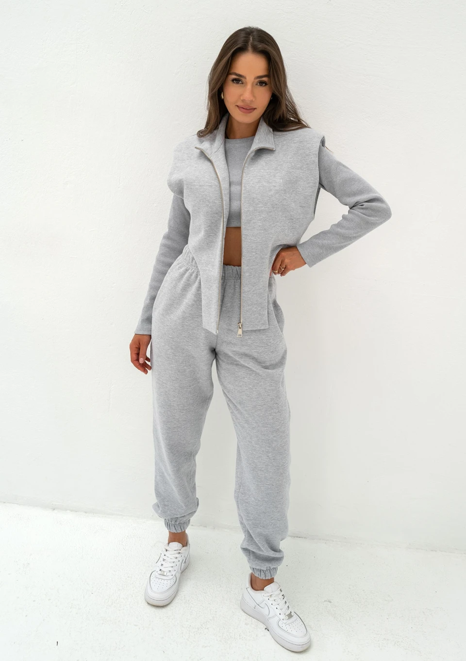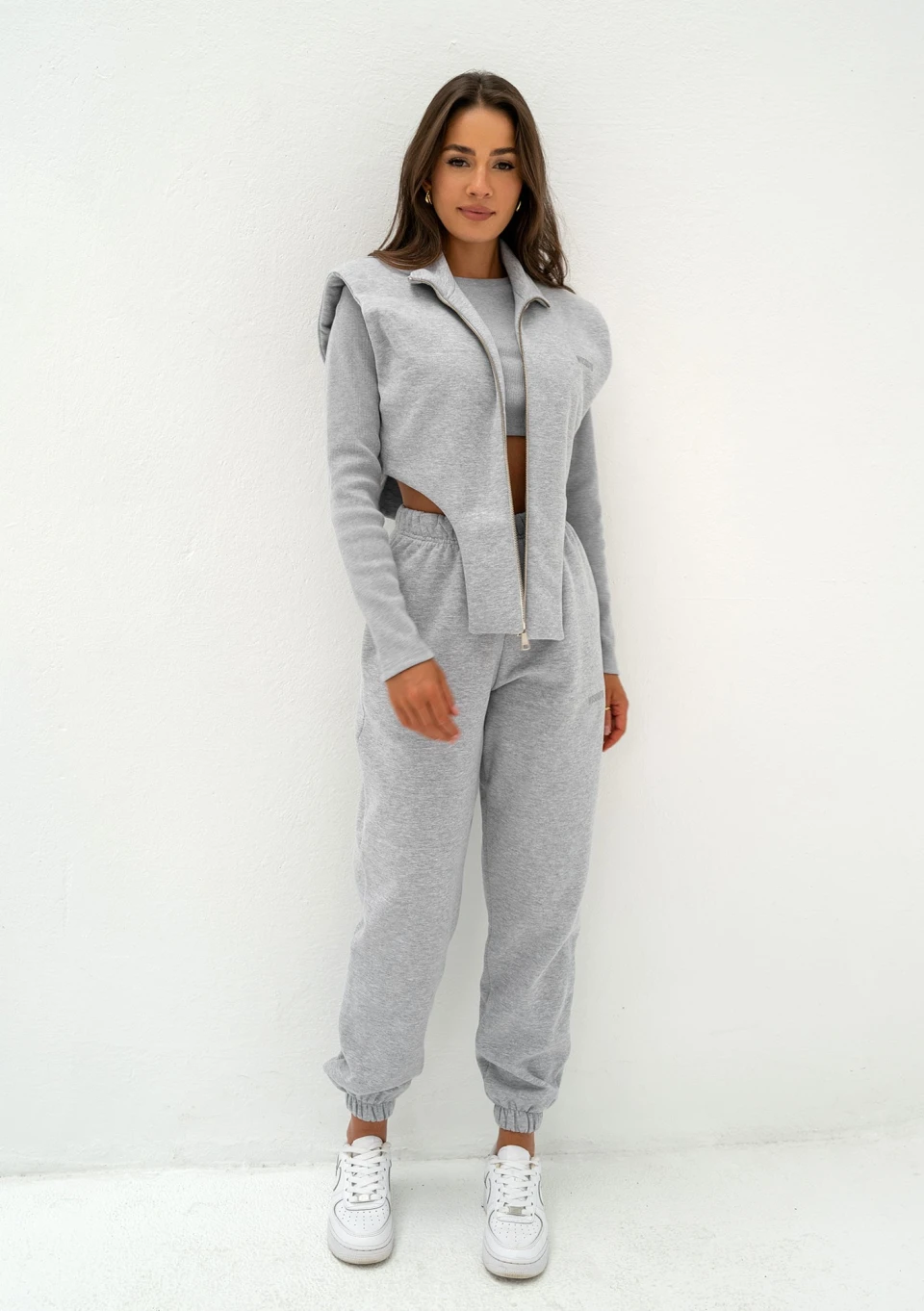 Kolee - Grey melange vest with shoulder pads
