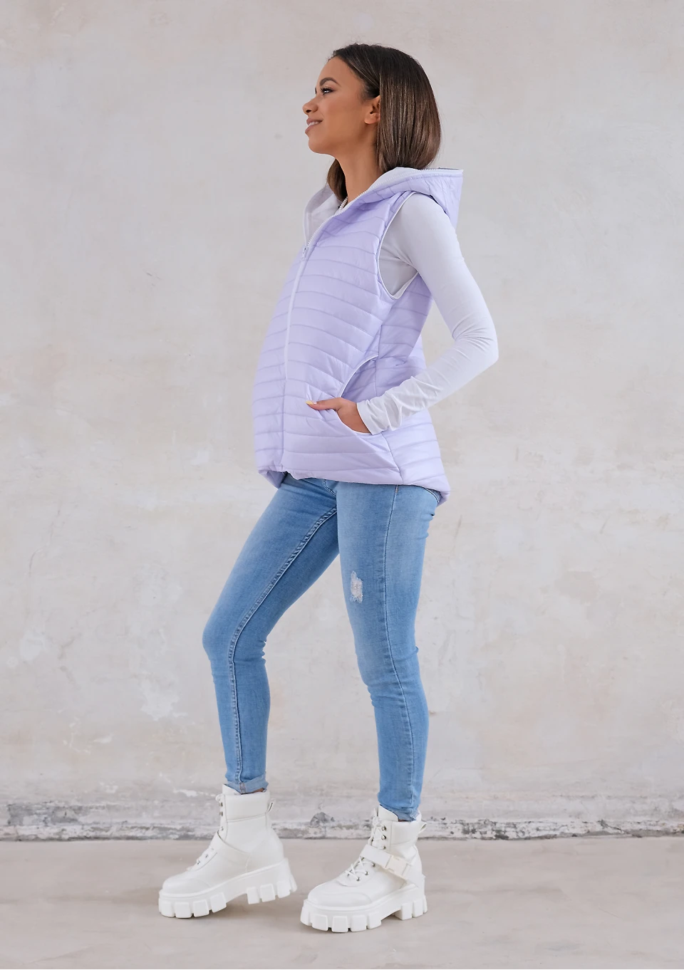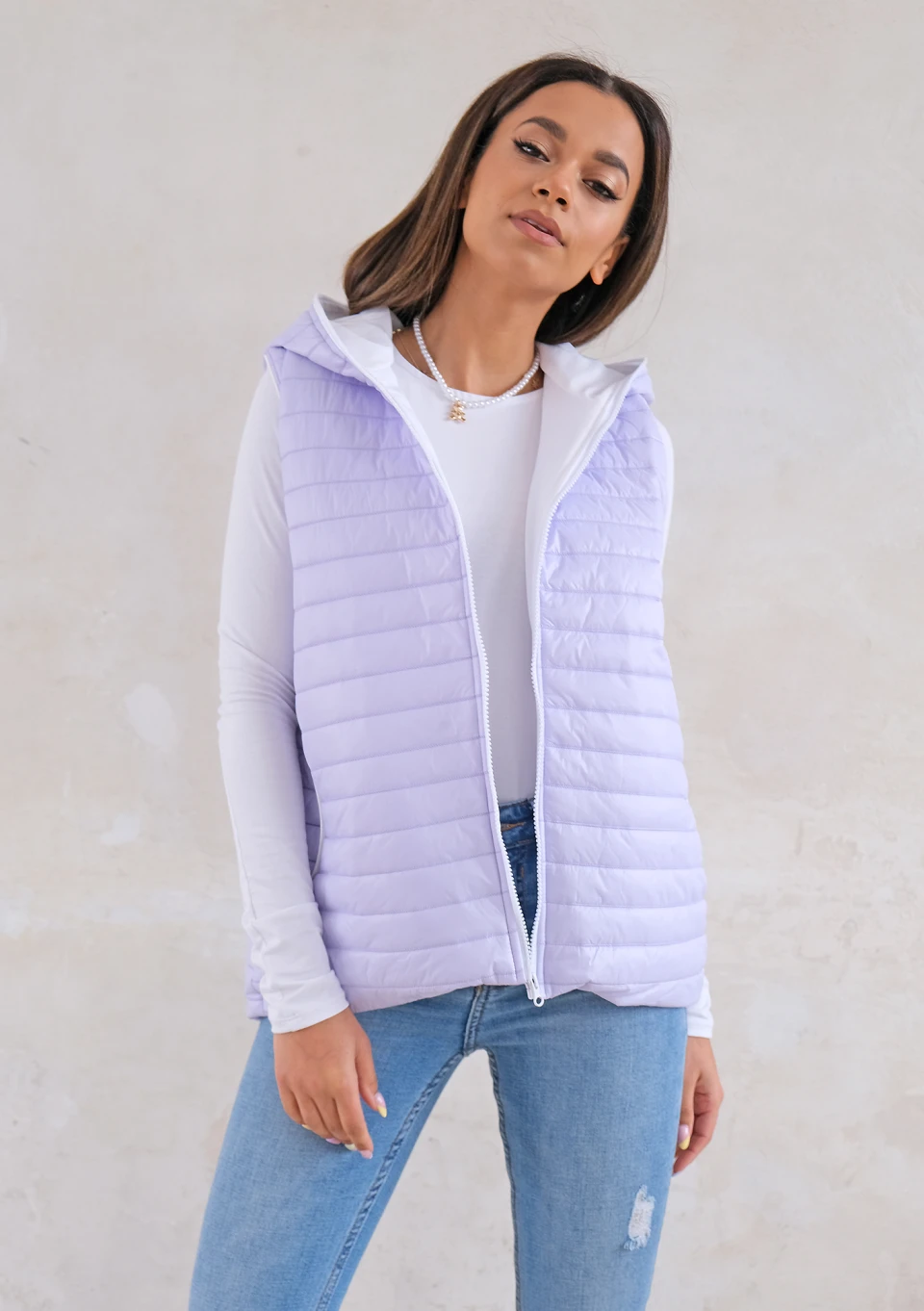 Quilted sleeveless lila jacket