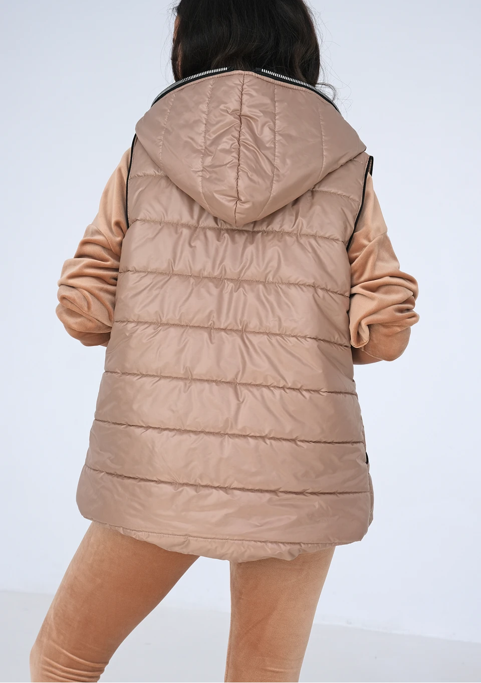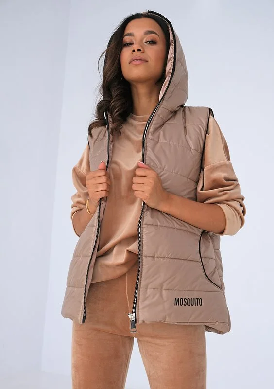 Vicky - quilted sleeveless nude beige jacket with a logo