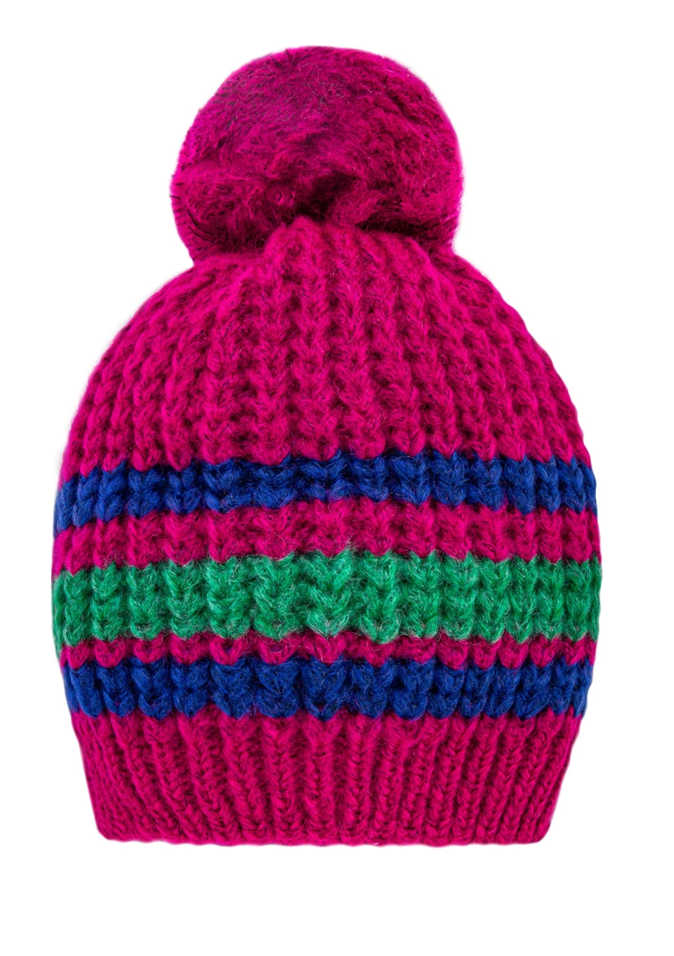 Naluu - Czapka w paski z pomponem Fuksja