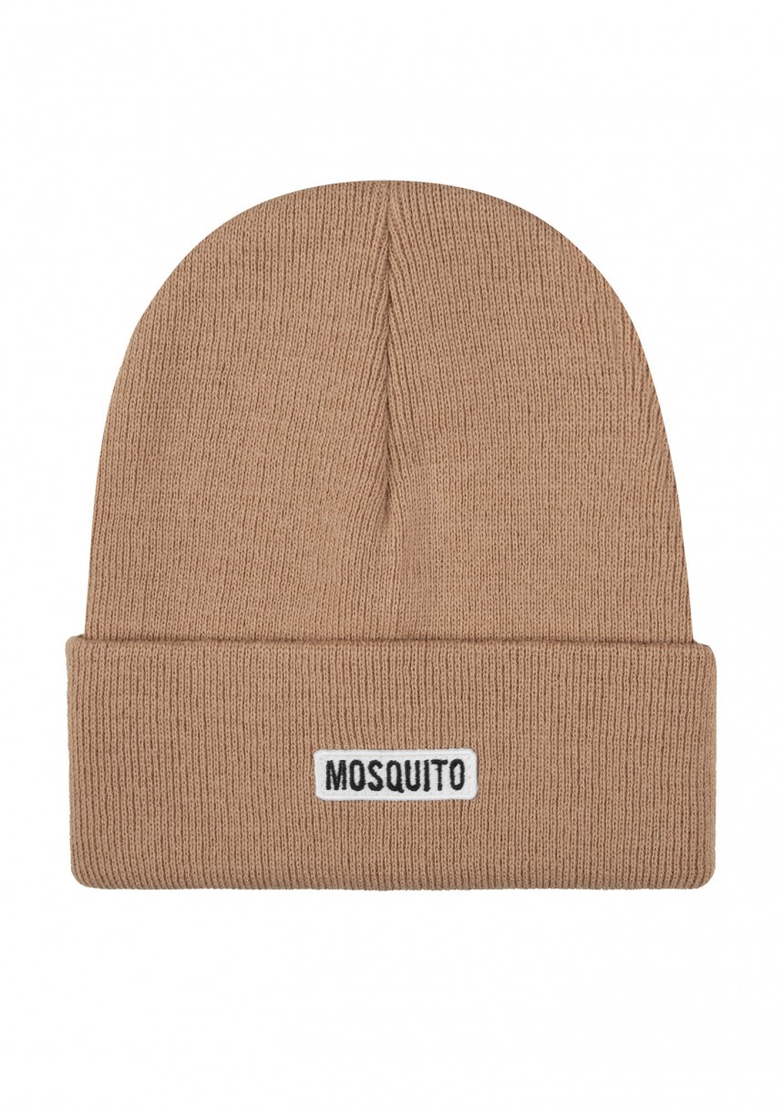 Beżowa czapka damska typu beanie w odcieniu latte wygodnie dopasuje się do głowy. Wykonana z miękkiej i optymalnie ciepłej dzianiny.