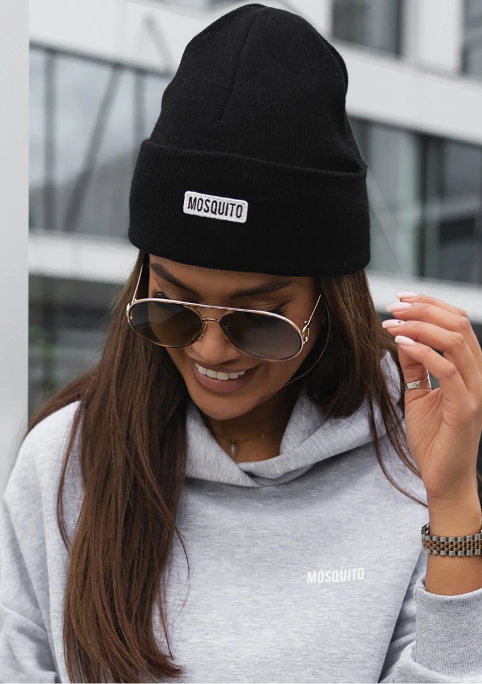 Dopasowana czapka damska typu beanie w uniwersalnym, czarnym kolorze. Na przodzie widoczne logo naszej marki. Doda stylu sportowym i prostym kombinacjom.