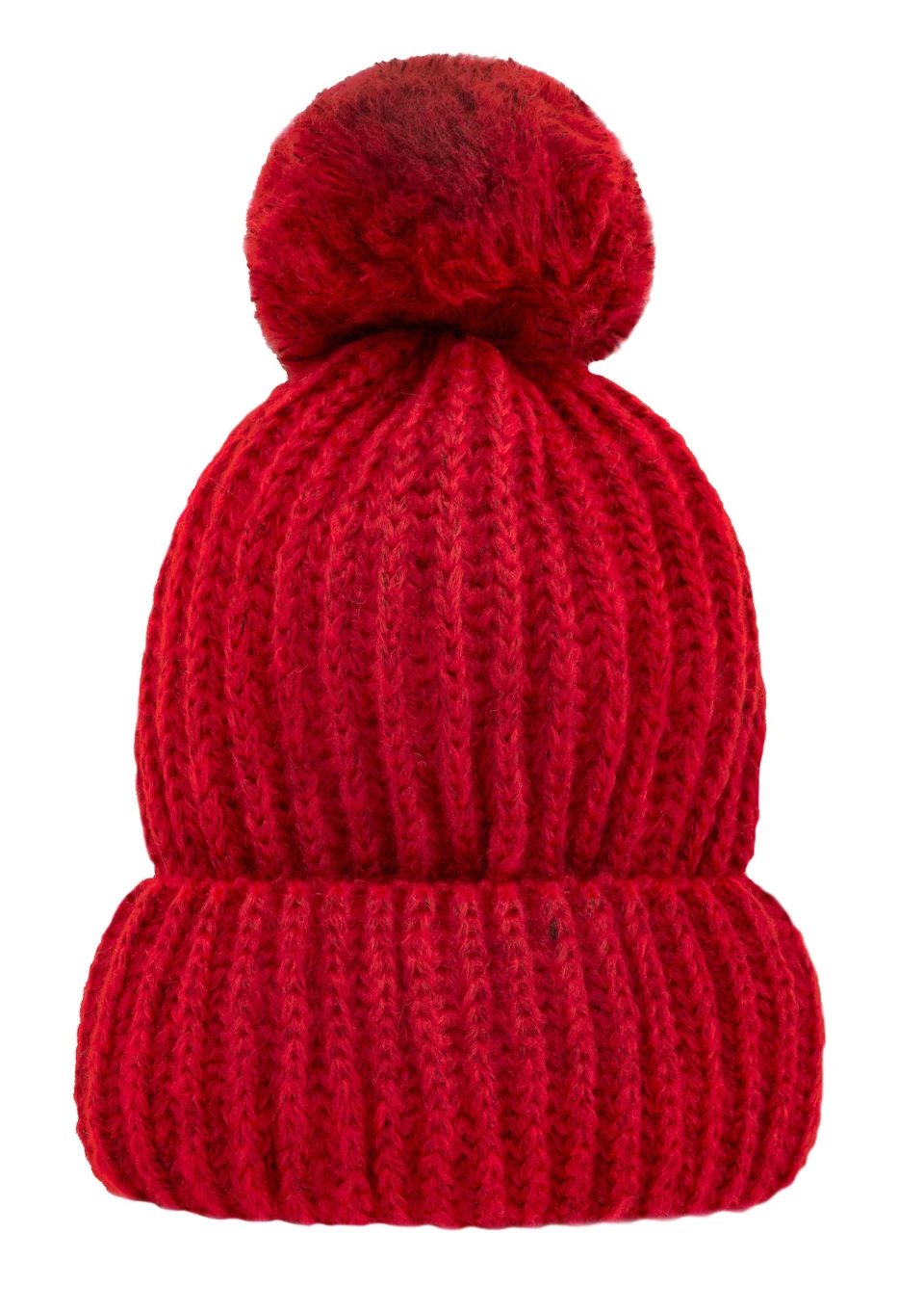 Czerwona czapka damska z pomponem, wykonana z miękkiej i grubej dzianiny. Zawiera wełnę, dlatego zapewni maksimum ciepła.