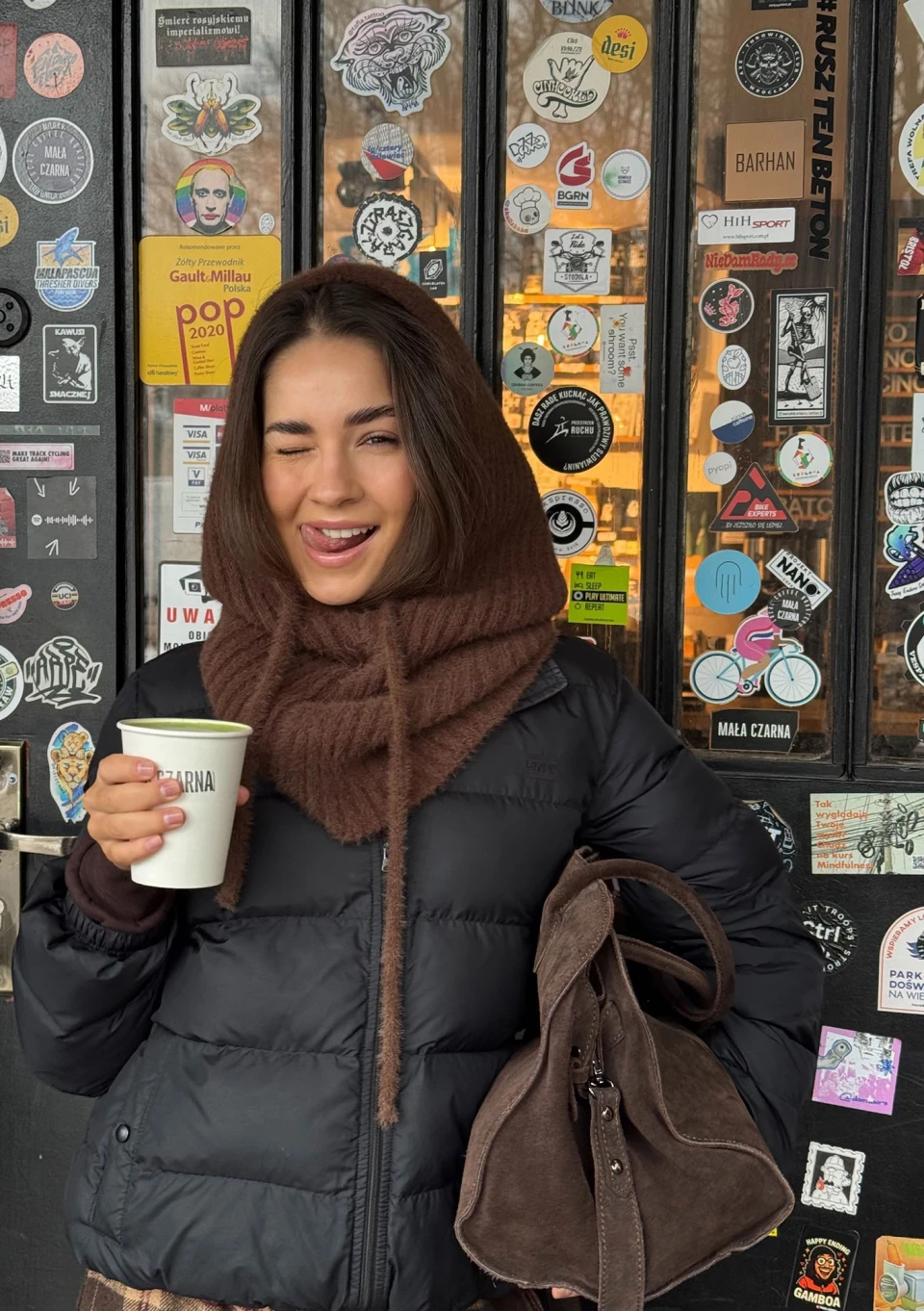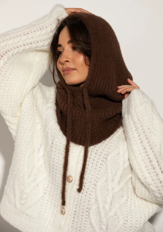 Alpaca Hood - Miękka balaclava dzianinowa Brązowa