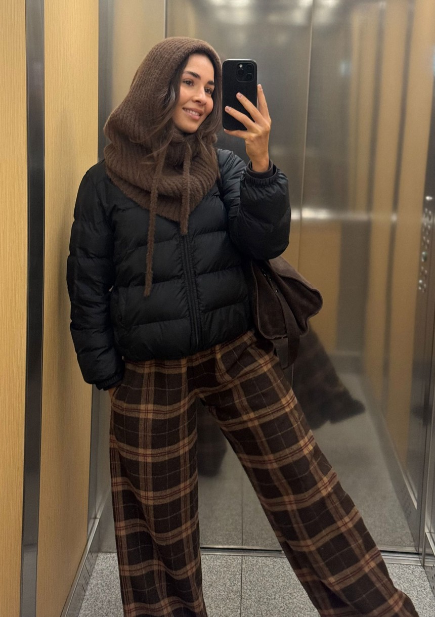 Odkryj ciepło brązu w formie mięciutkiej balaclavy, która łączy w sobie urok kominiarki i funkcjonalność grubego szala. Dzianina z włosiem jest niesamowicie przyjemna w dotyku, a system regulacji troczkami gwarantuje, że dopasujesz ją idealnie do swoich potrzeb i temperatury. To propozycja dla kobiet ceniących czas i styl – pojedynczy, modny akcesorium ogranicza ilość zimowych dodatków do minimum, chroniąc Cię przed zgubieniem ich w biegu, a przy tym dodając stylizacji szlachetnego charakteru.