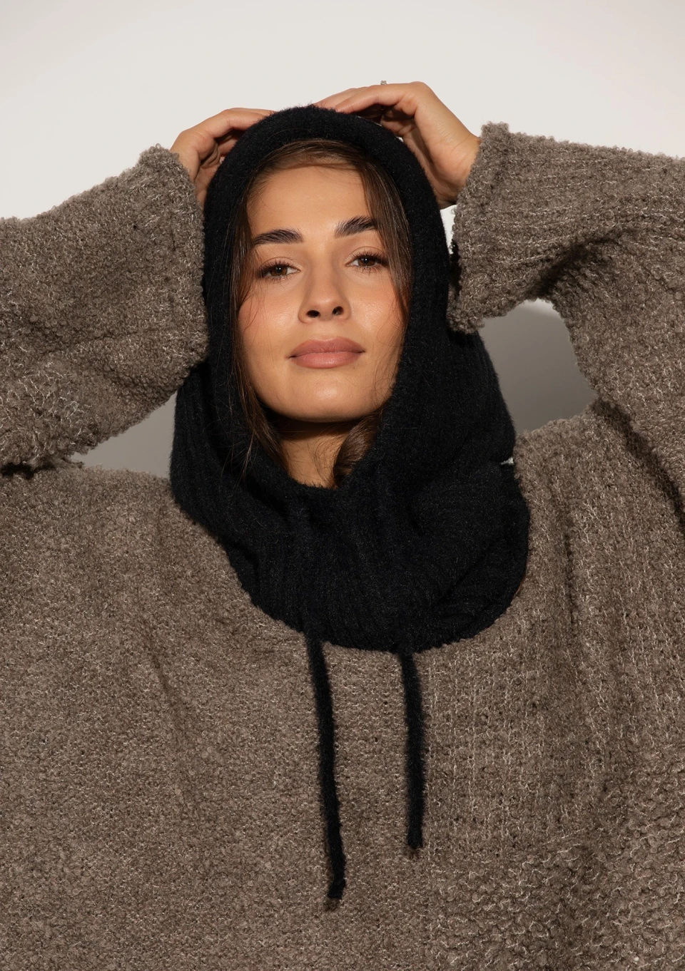 Alpaca Hood - Miękka balaclava dzianinowa Czarna